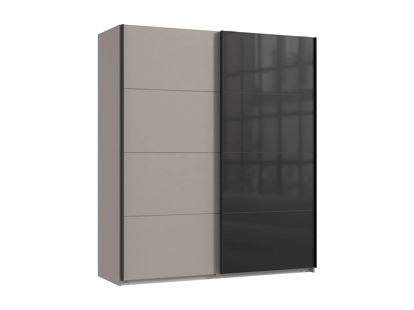 Armoire à portes coulissantes coloris Gris et verre coloris noir, rechampis graphite - Longueur 180 x Hauteur 208 x Profondeur 65 cm