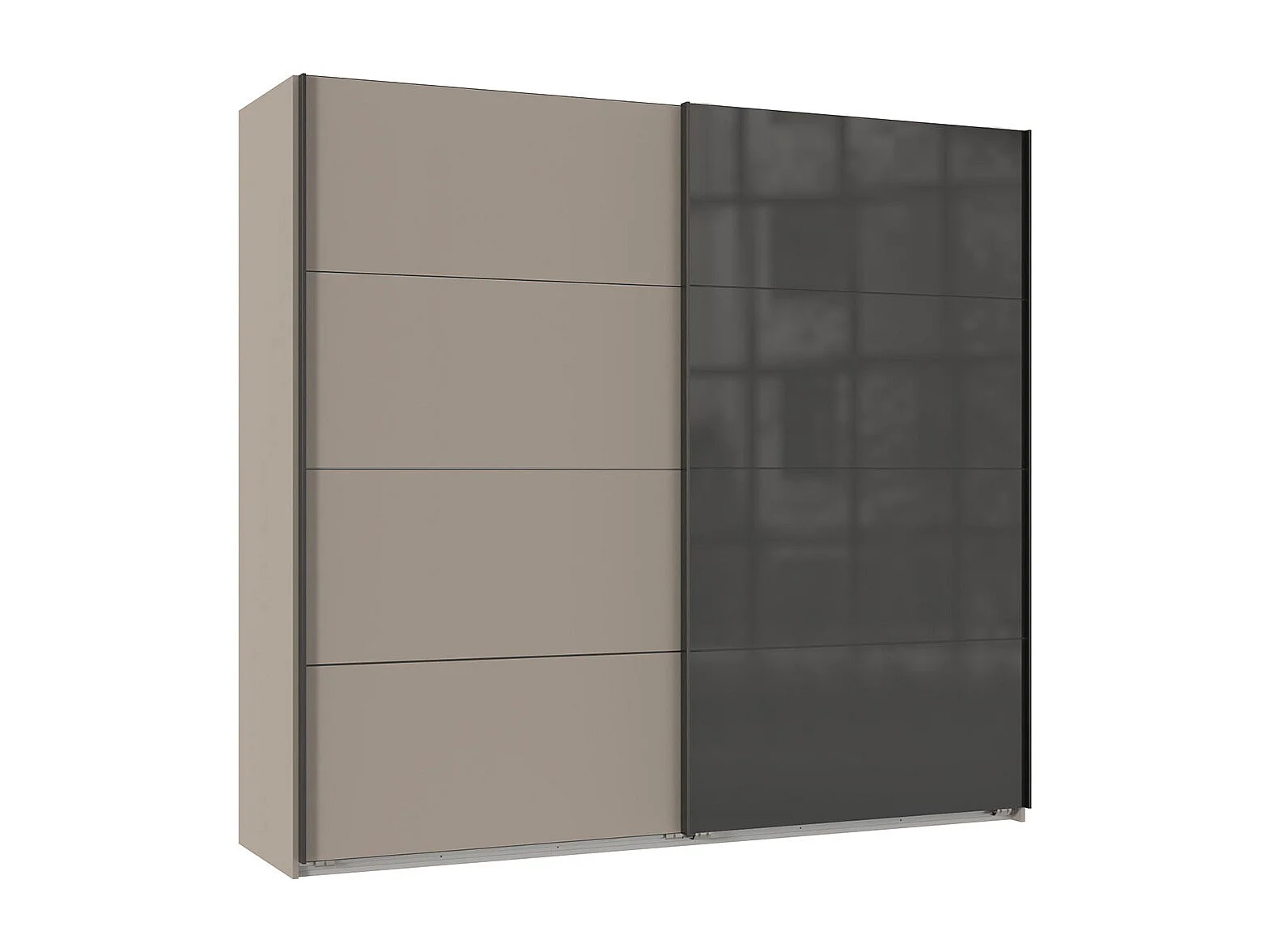 Armoire à portes coulissantes coloris Gris et verre coloris noir, rechampis graphite - Longueur 225 x Hauteur 208 x Profondeur 65 cm