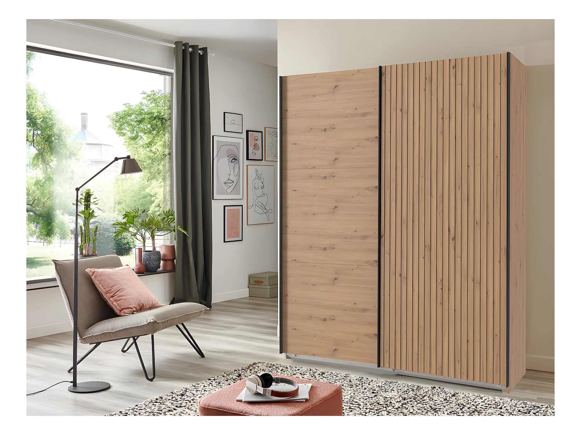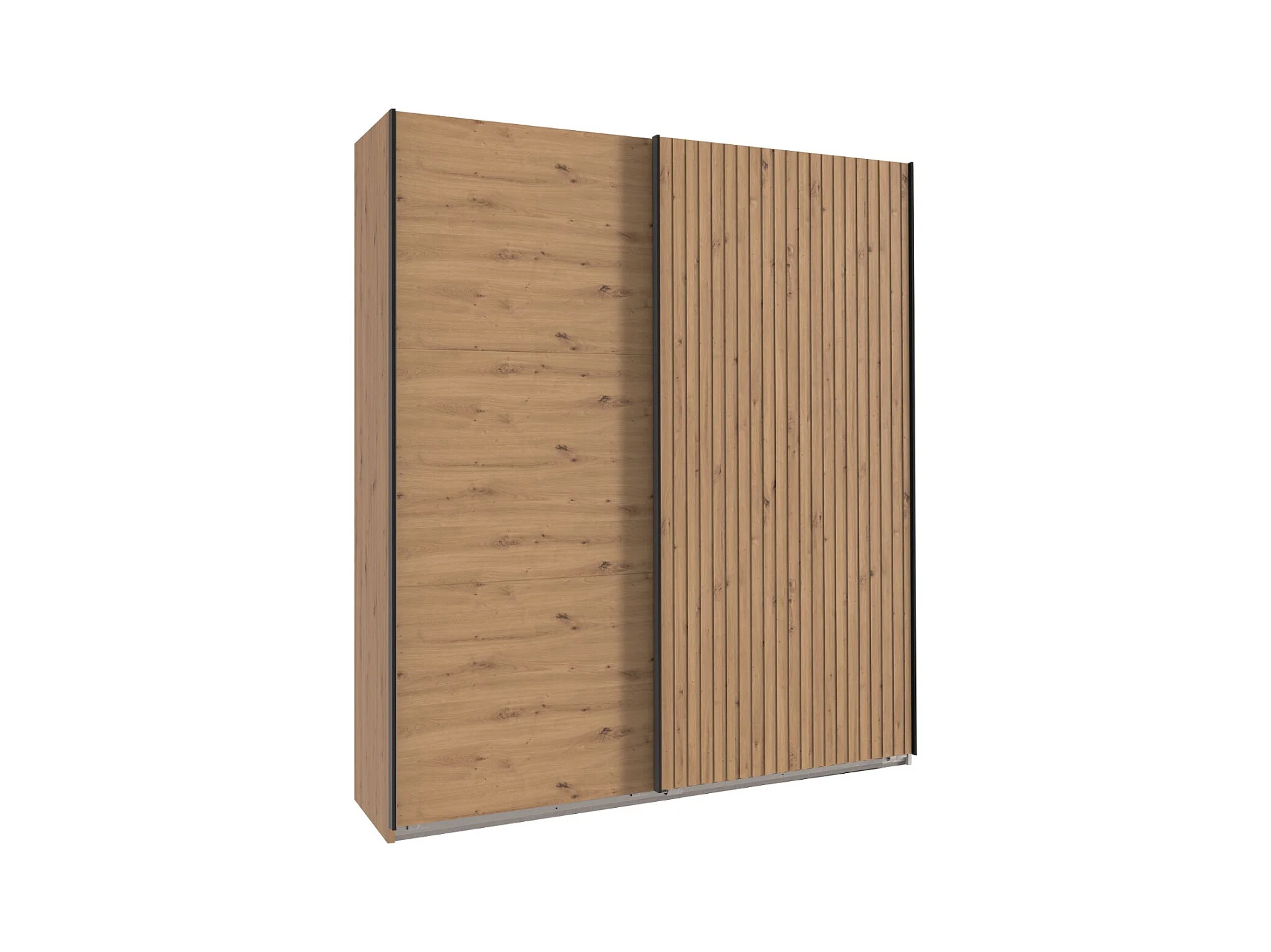 Armoire à portes coulissantes coloris imitation chêne Artisan - L. 200 x H. 216 x P. 65 cm