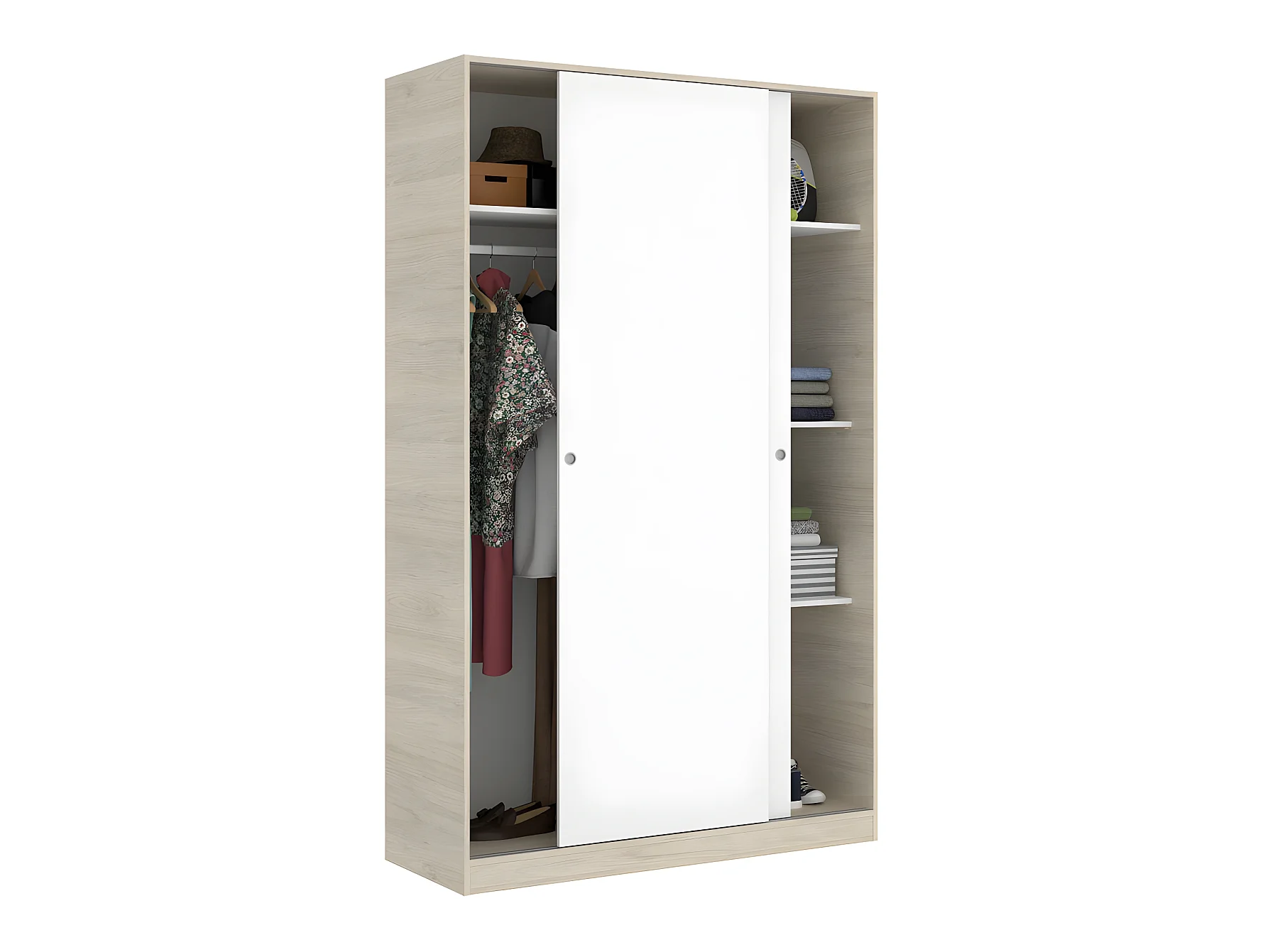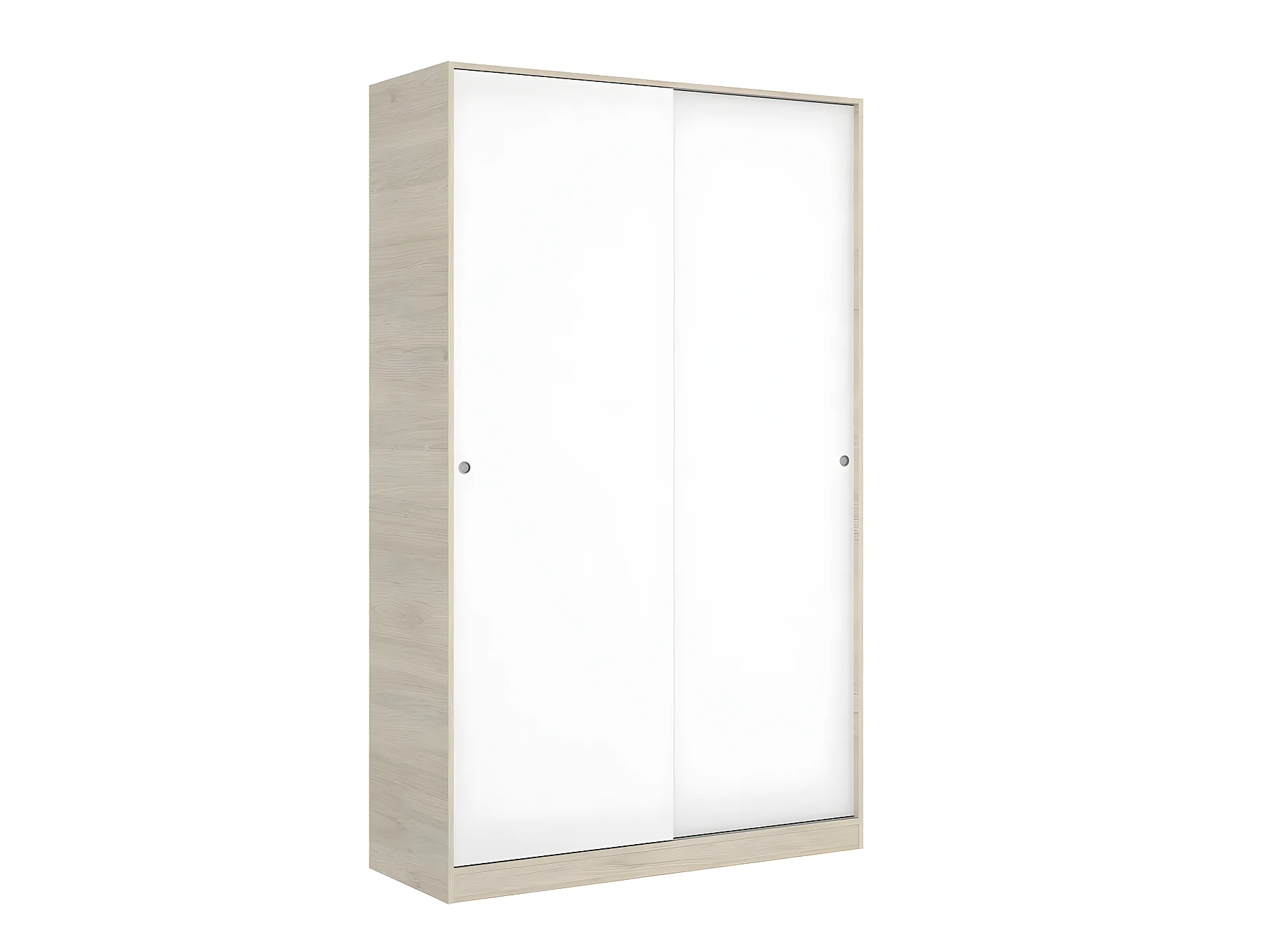 Armoire à portes coulissantes coloris naturel/blanc brillant - Longueur 120 x Profondeur 50 x Hauteur 204 cm