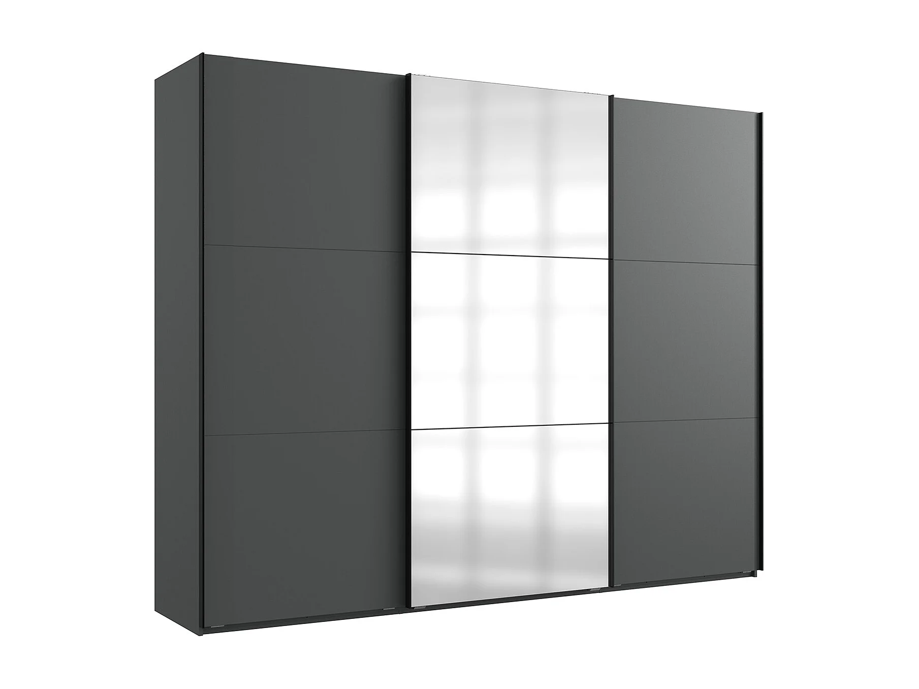 Armoire à portes coulissantes, meuble de rangement avec miroir coloris graphite
