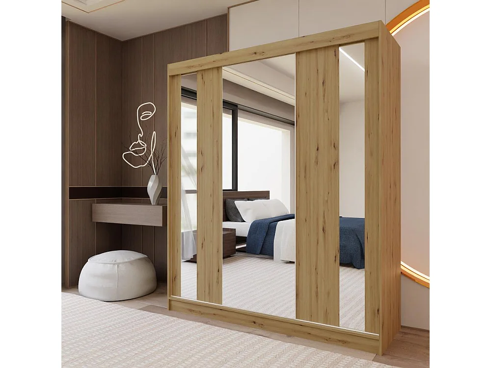 ARMOIRE À PORTES FERMÉES Gaja 180/216/61 chêne Artisan avec miroir Bloc tiroirs