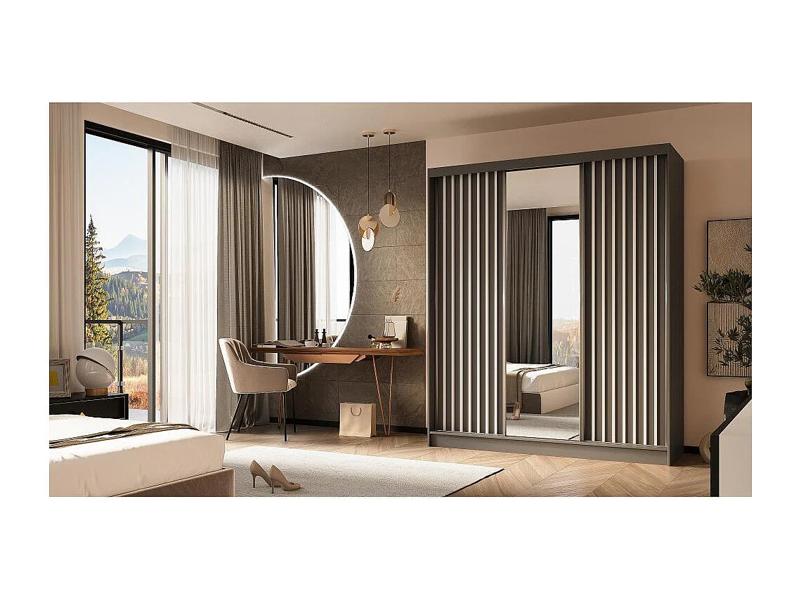 ARMOIRE A PORTES FERMÉES Helix 180/216/61 gris+blanc avec insert de tiroir