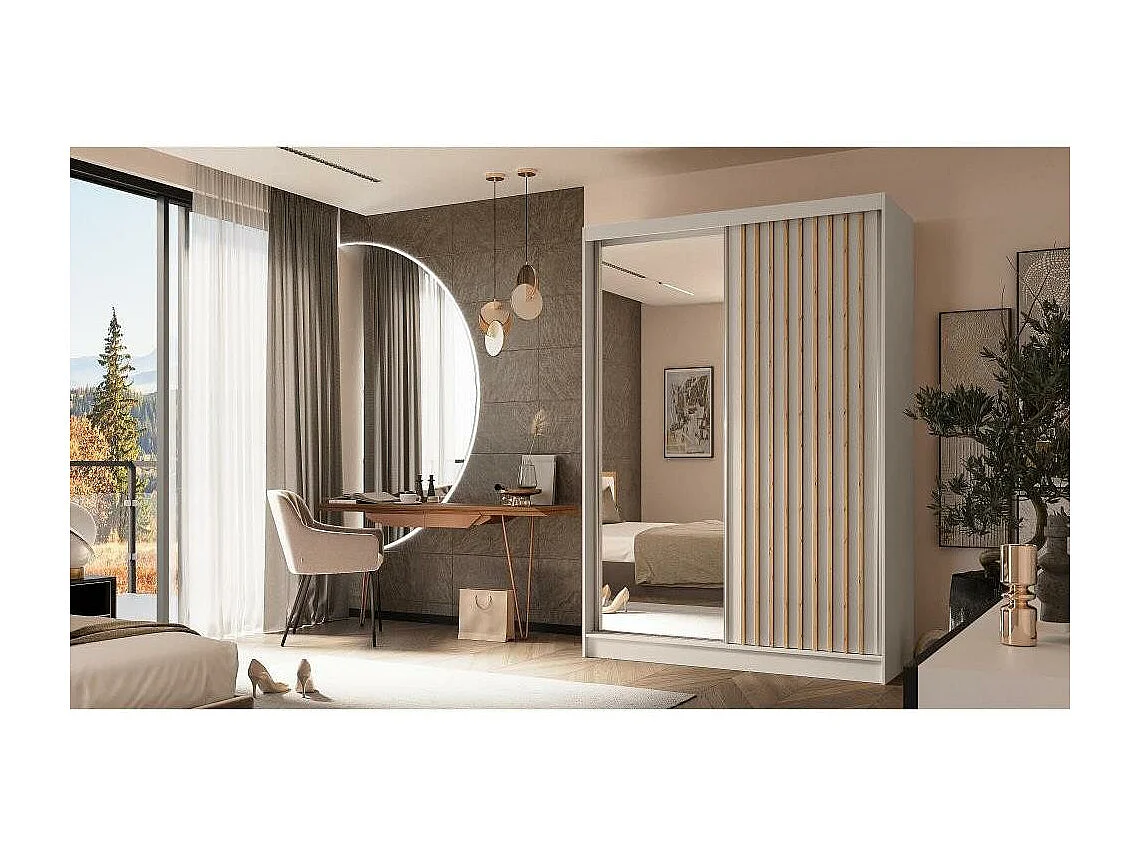 ARMOIRE A PORTES FERMÉES Helix II 120/216/61 cachemire+chêne Artisan avec tiroirs