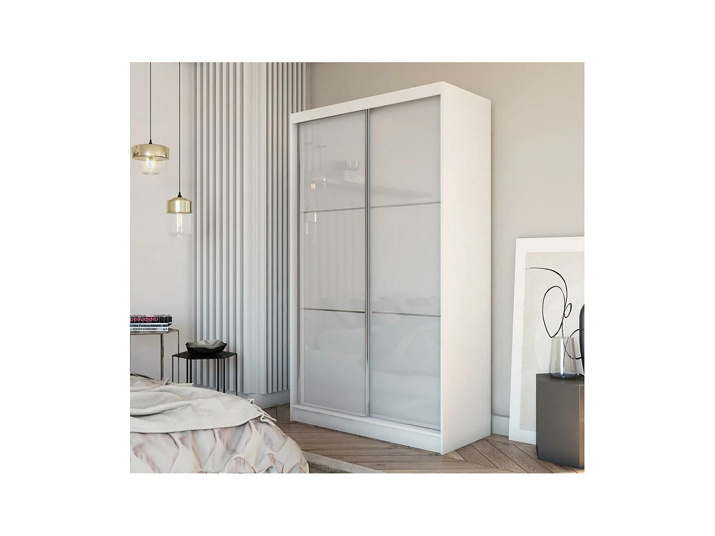 ARMOIRE À PORTES FERMÉES Viva 150/216/61 blanc avec verre Lacobel et blocs-tiroirs