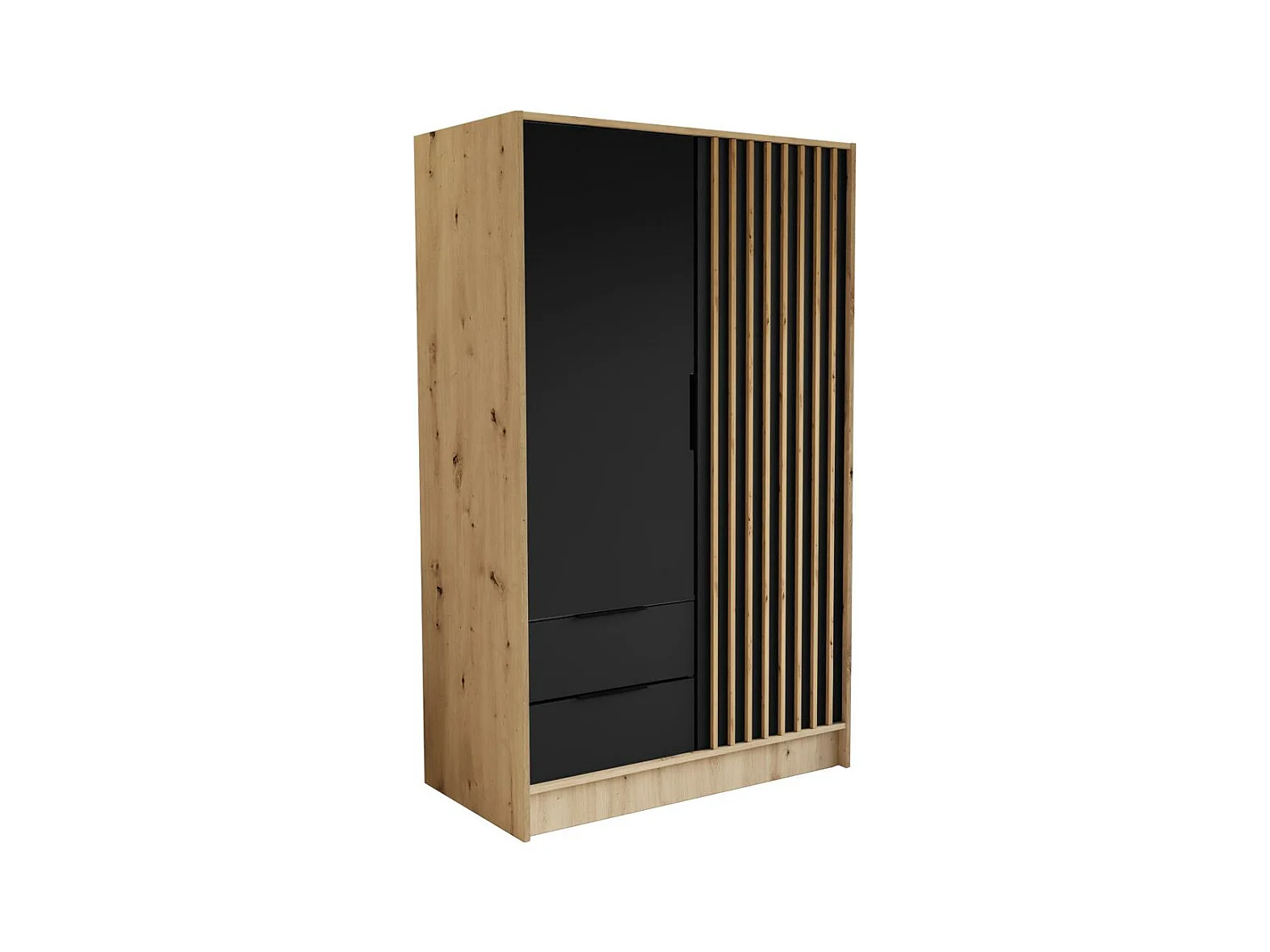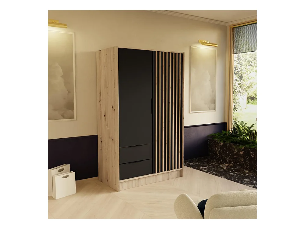 ARMOIRE A PORTES TOURNANTES Nero 100/51/200 cm avec lamelles chêne artisan+noir