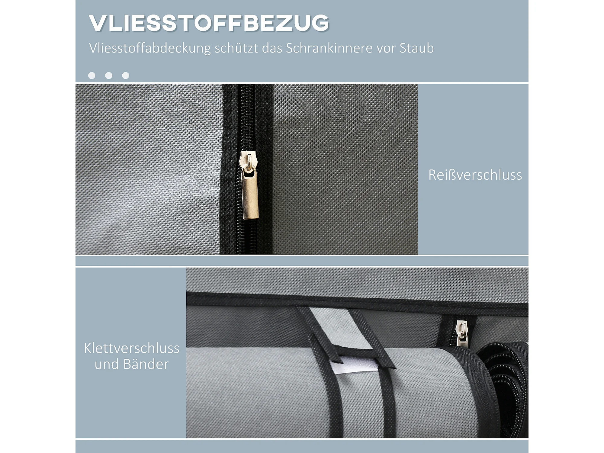 Armoire pliante 2-en-1 avec étagères et tringles, tissu non-tissé, gris foncé (125x43x162.5 cm)
