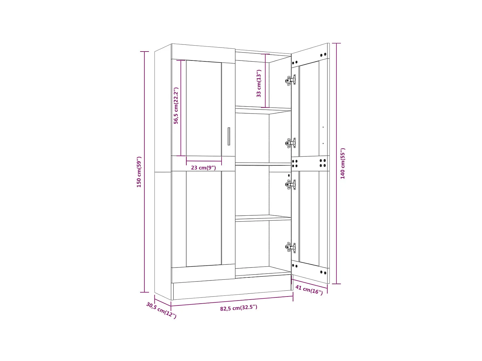 Armoire à vitrine Chêne fumé 82,5x30,5x150 cm Bois d'ingénierie