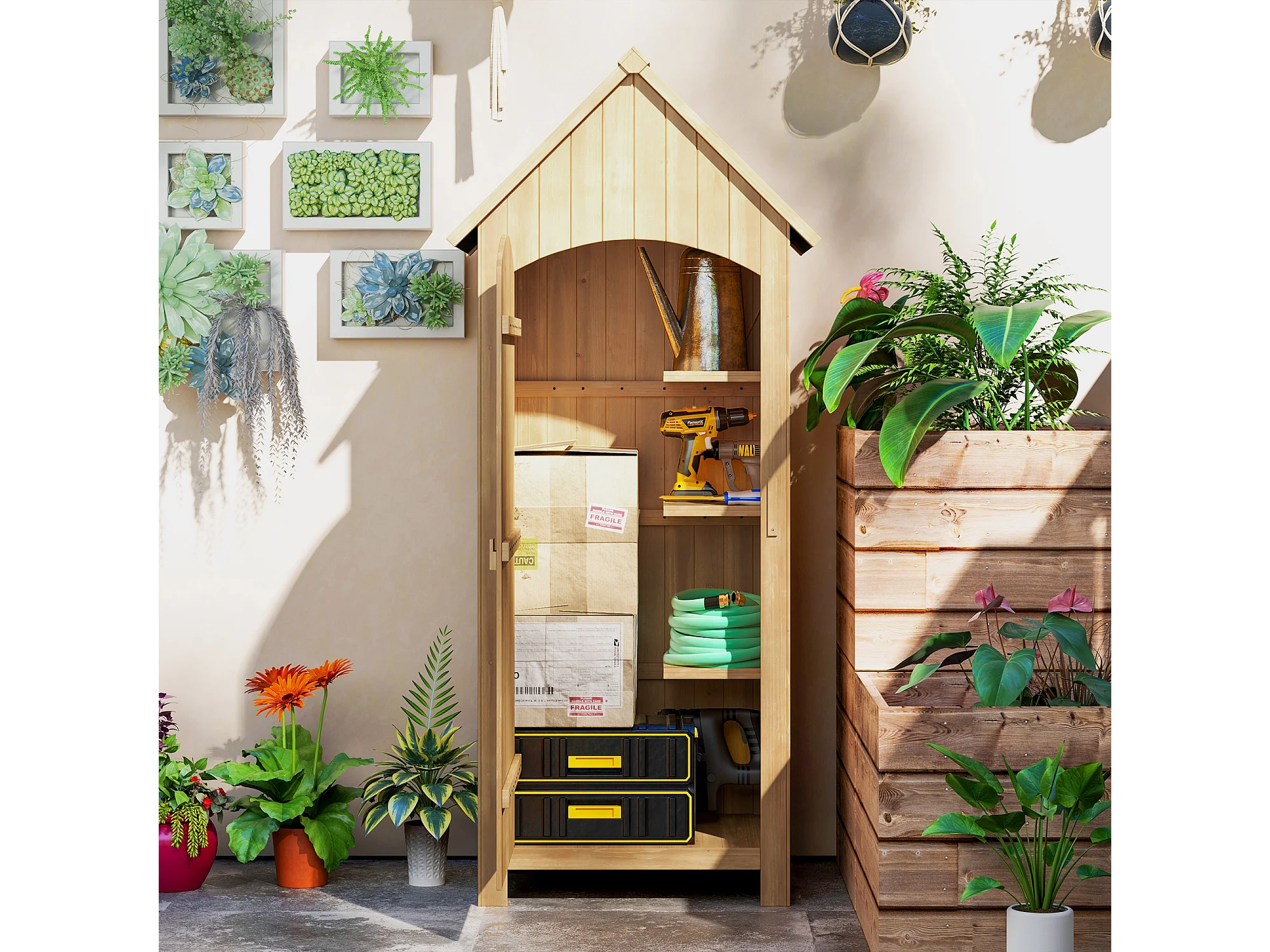 Armoire abri de jardin remise pour outils 3 étagères porte loquet toit pente bitumé dim. 77L x 54l x 179H cm bois sapin pré-huilé