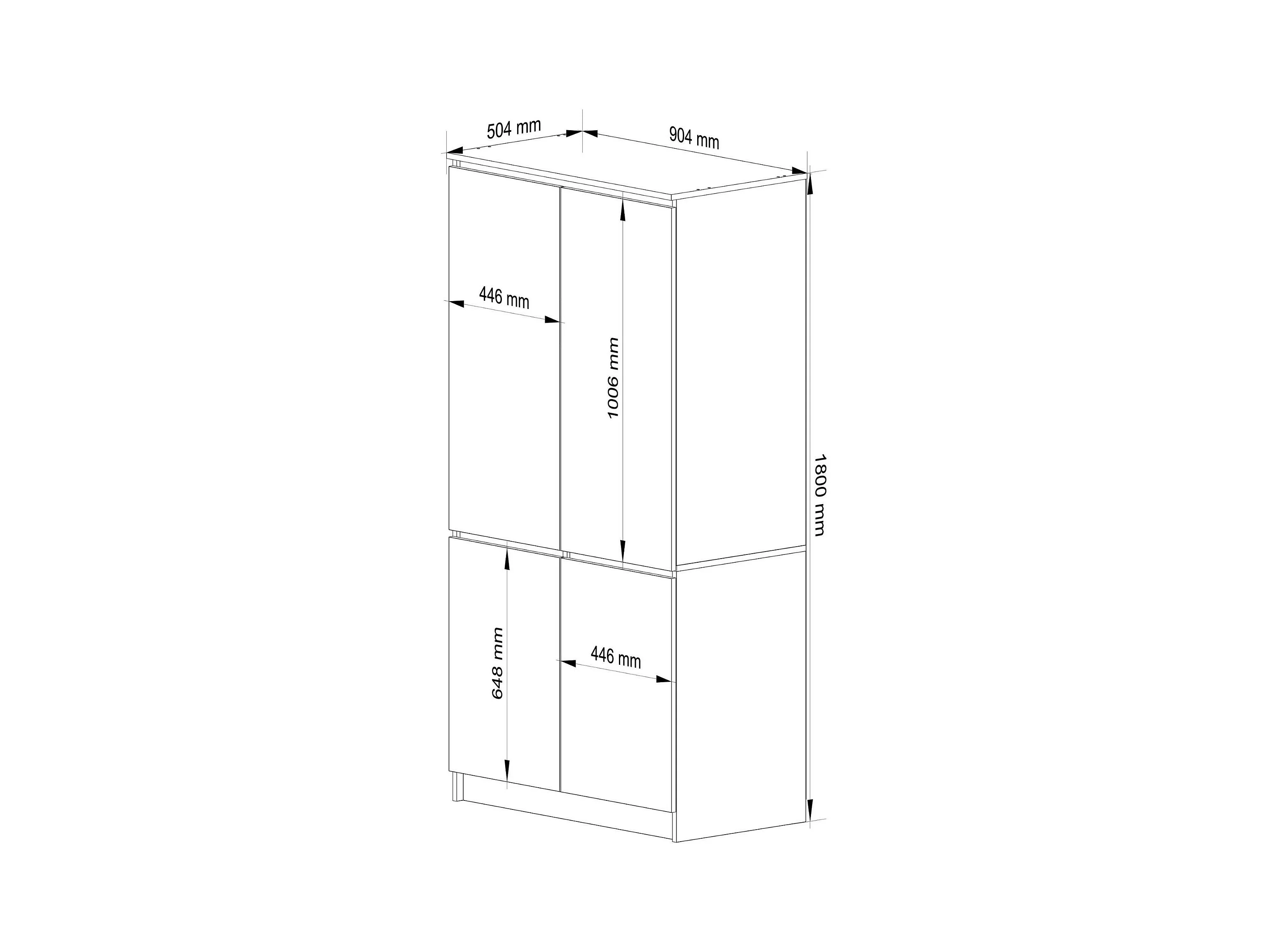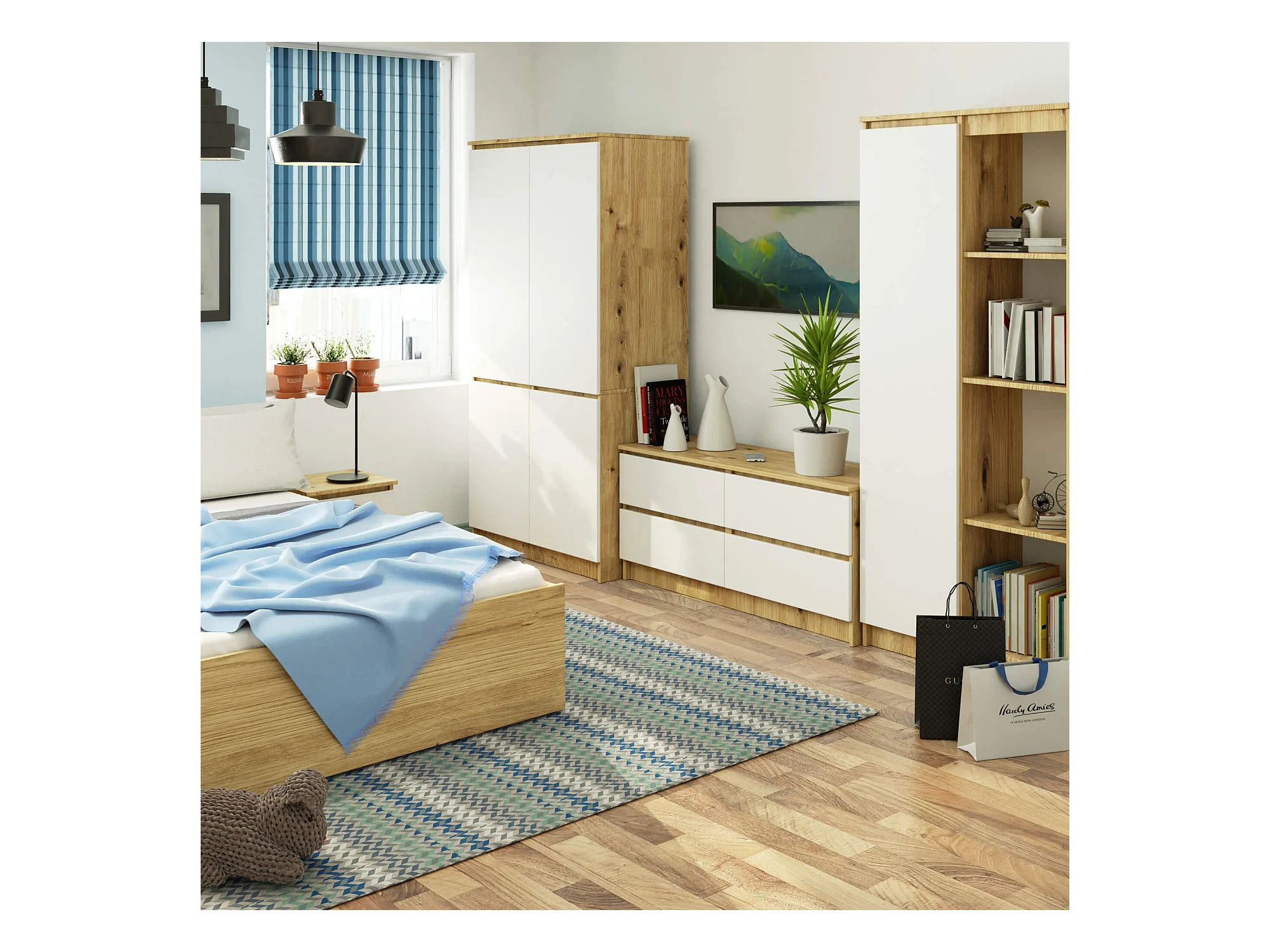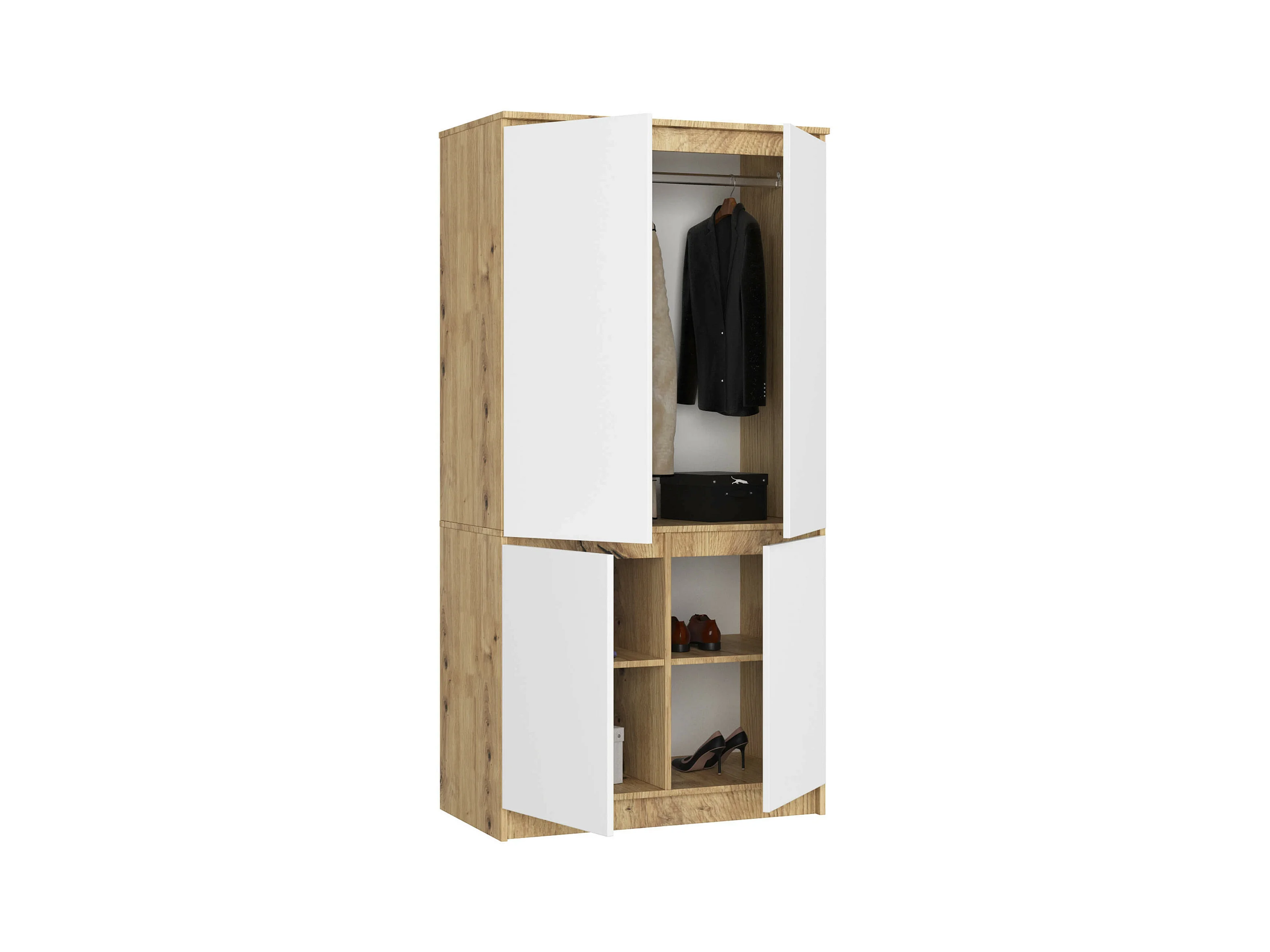 Armoire AKORD S90 Chêne Artisan 90 cm 4 portes façade Blanche 4 étagères 90x51x180 cm