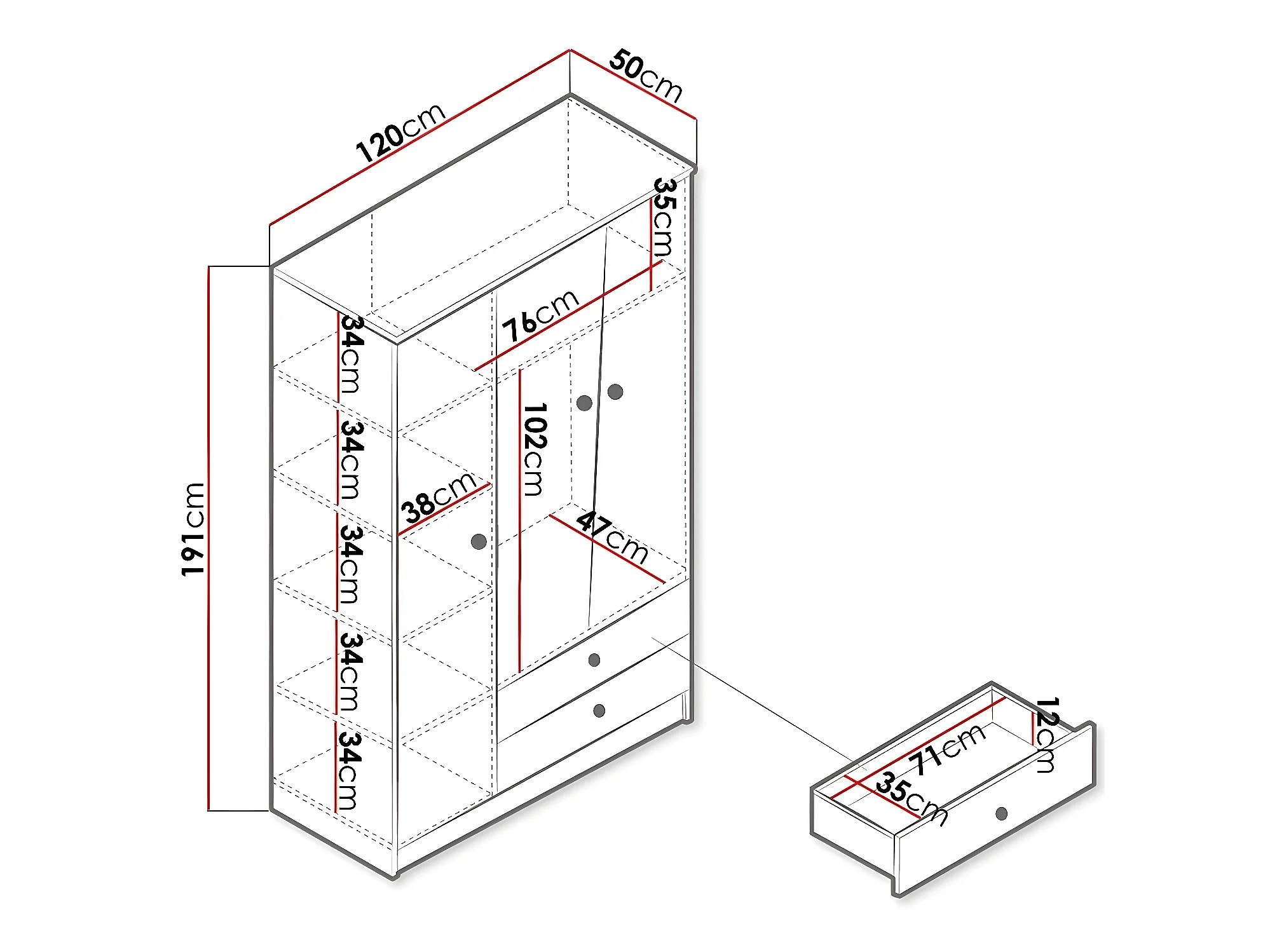 Armoire Almira 102, Blanc|Chêne Artisan, 191x120x50cm, Nombre d'étagères: 5