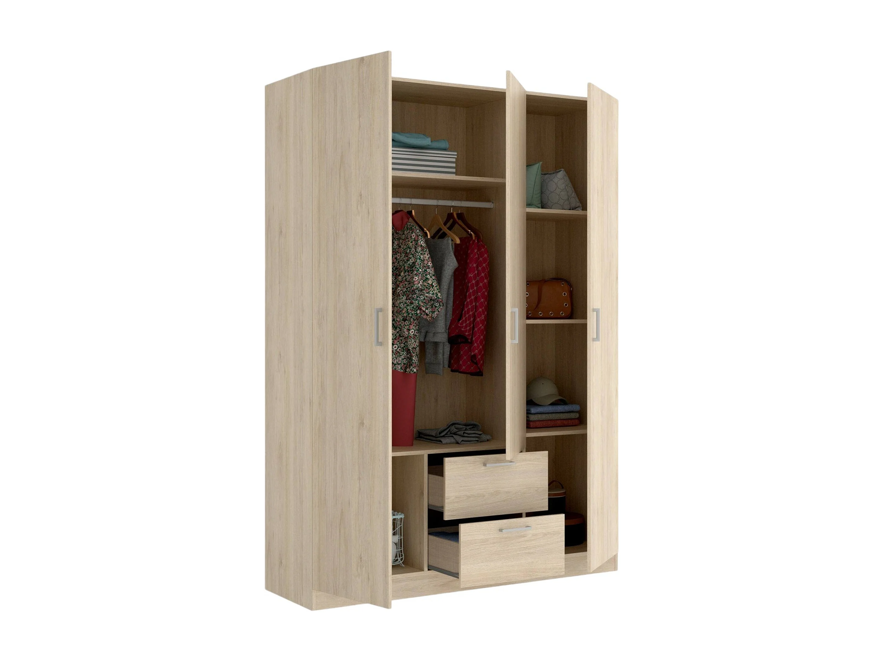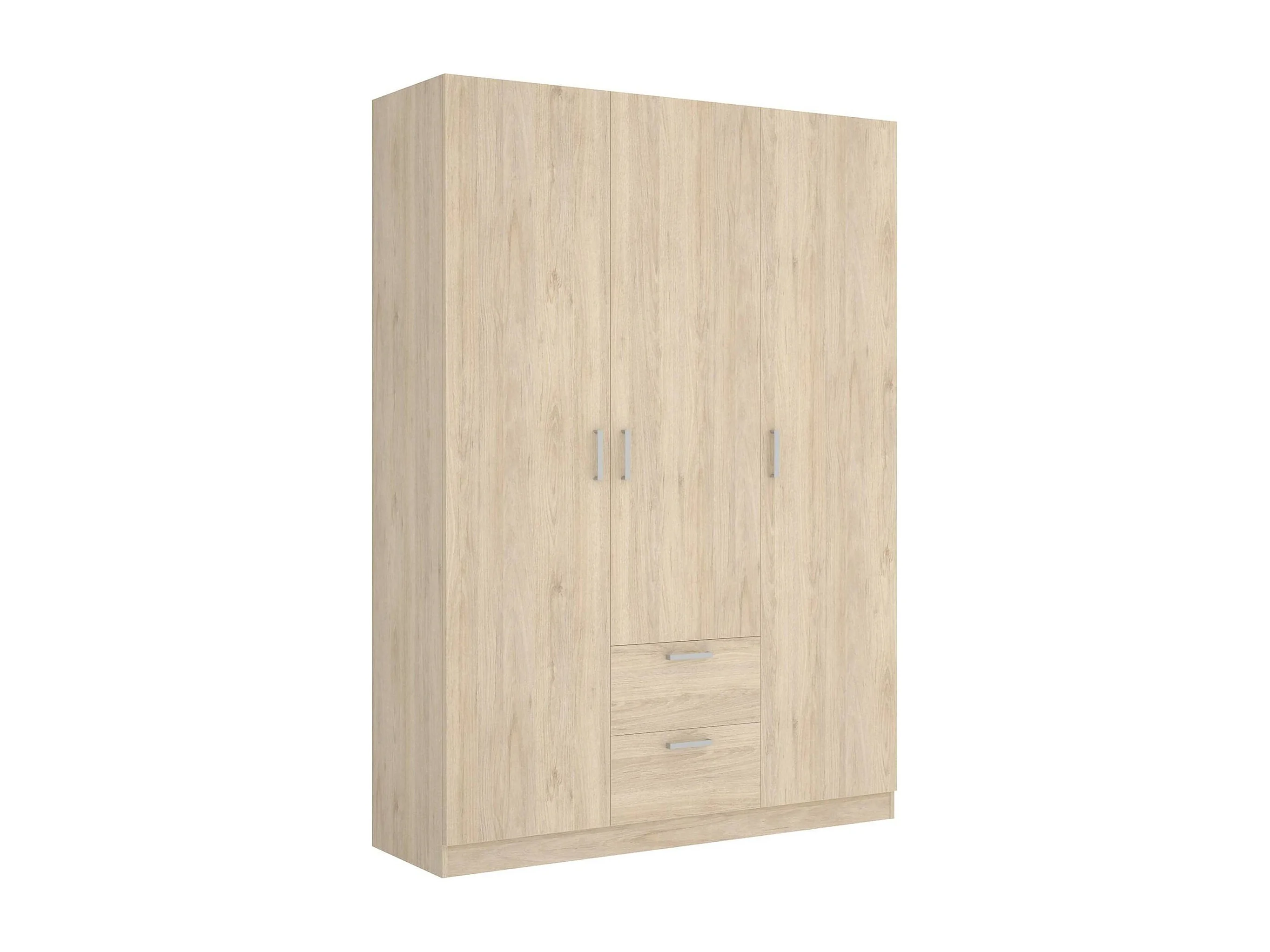 Argentella Armoire, Cintre pour chambre à coucher, Armoire avec 3 portes battantes et 2 tiroirs, 150x52h215 cm, Chêne