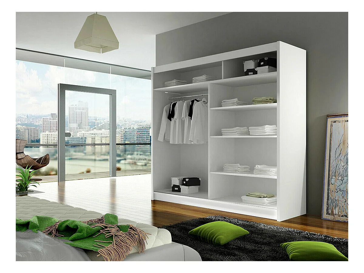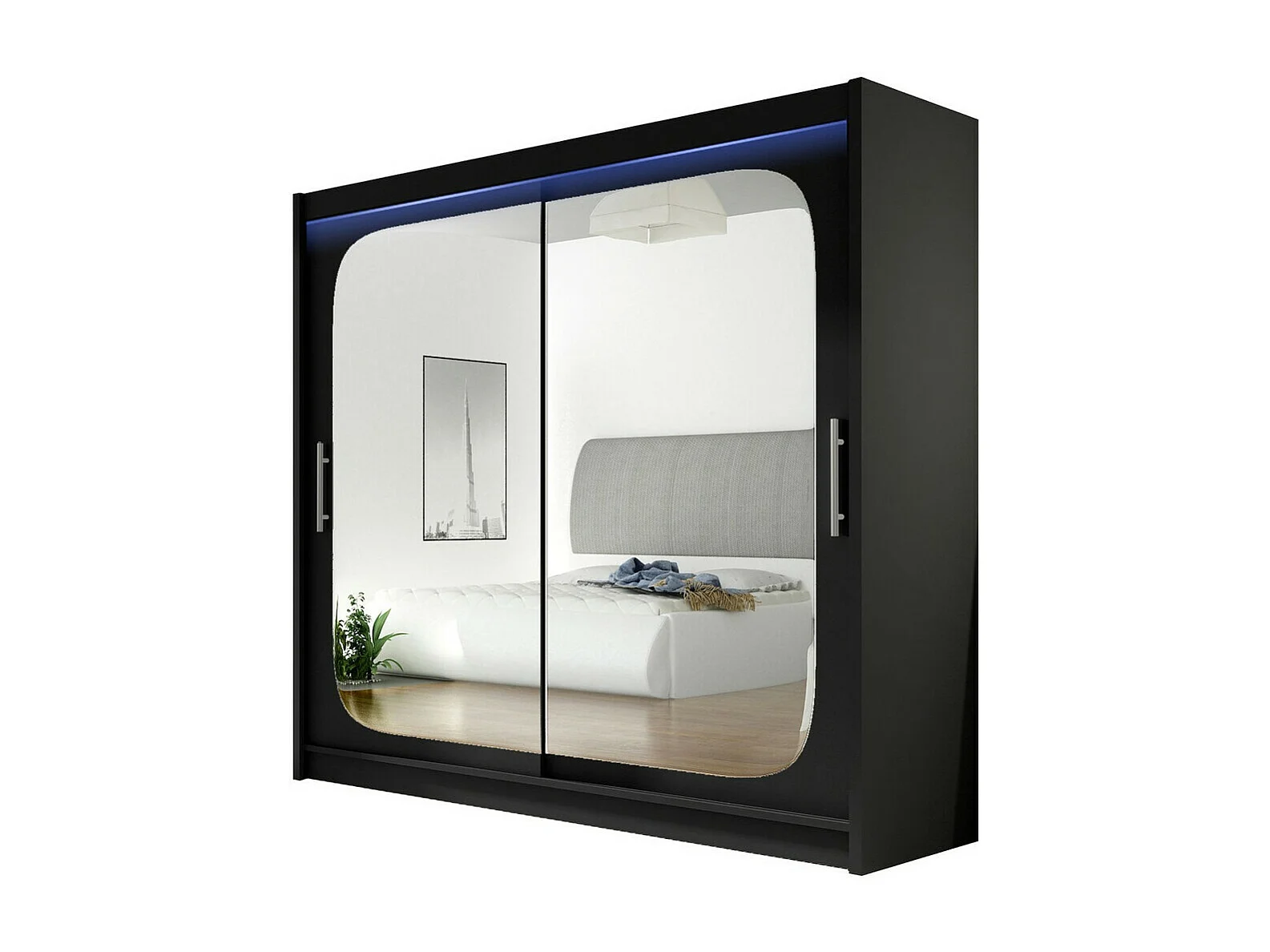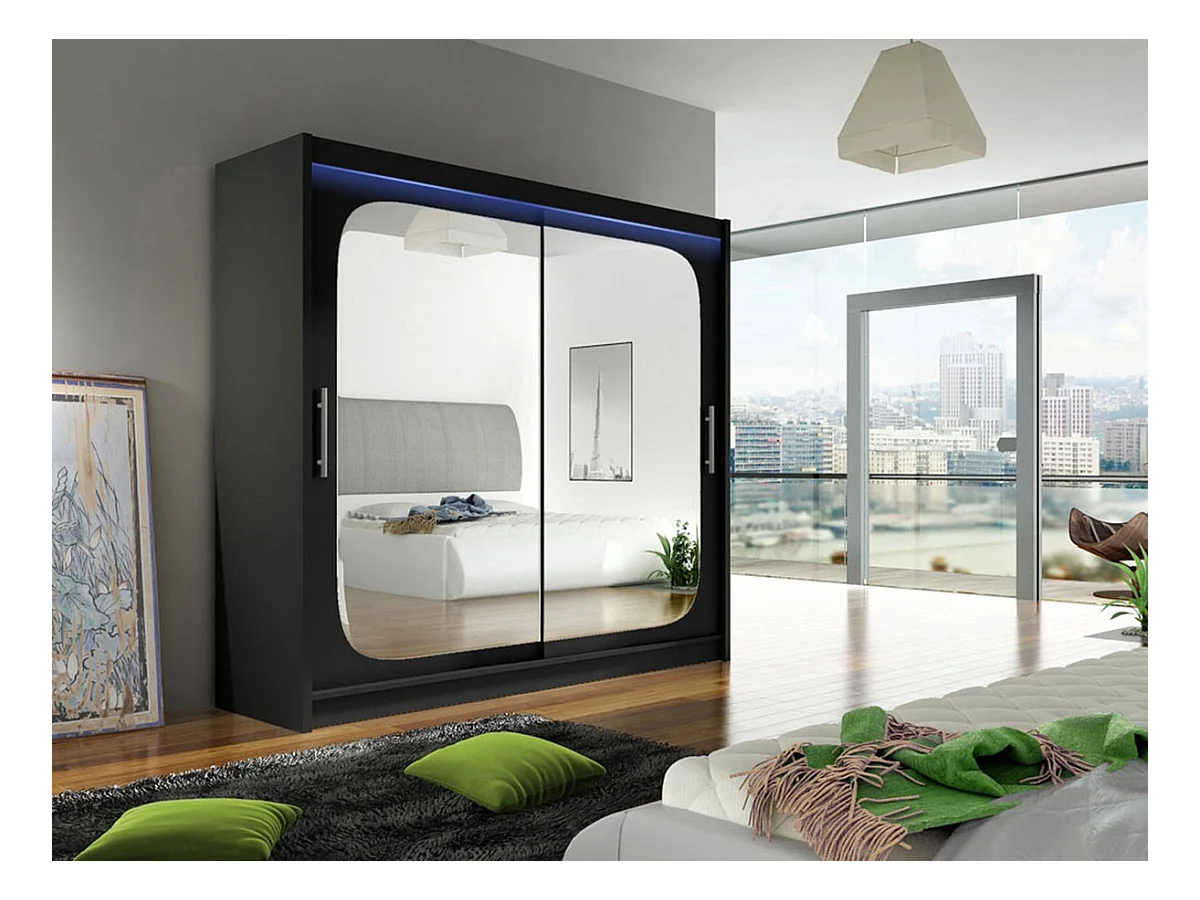 Armoire Closico 108, Noir, 215x180x58cm, Portes d'armoire: Coulissantes