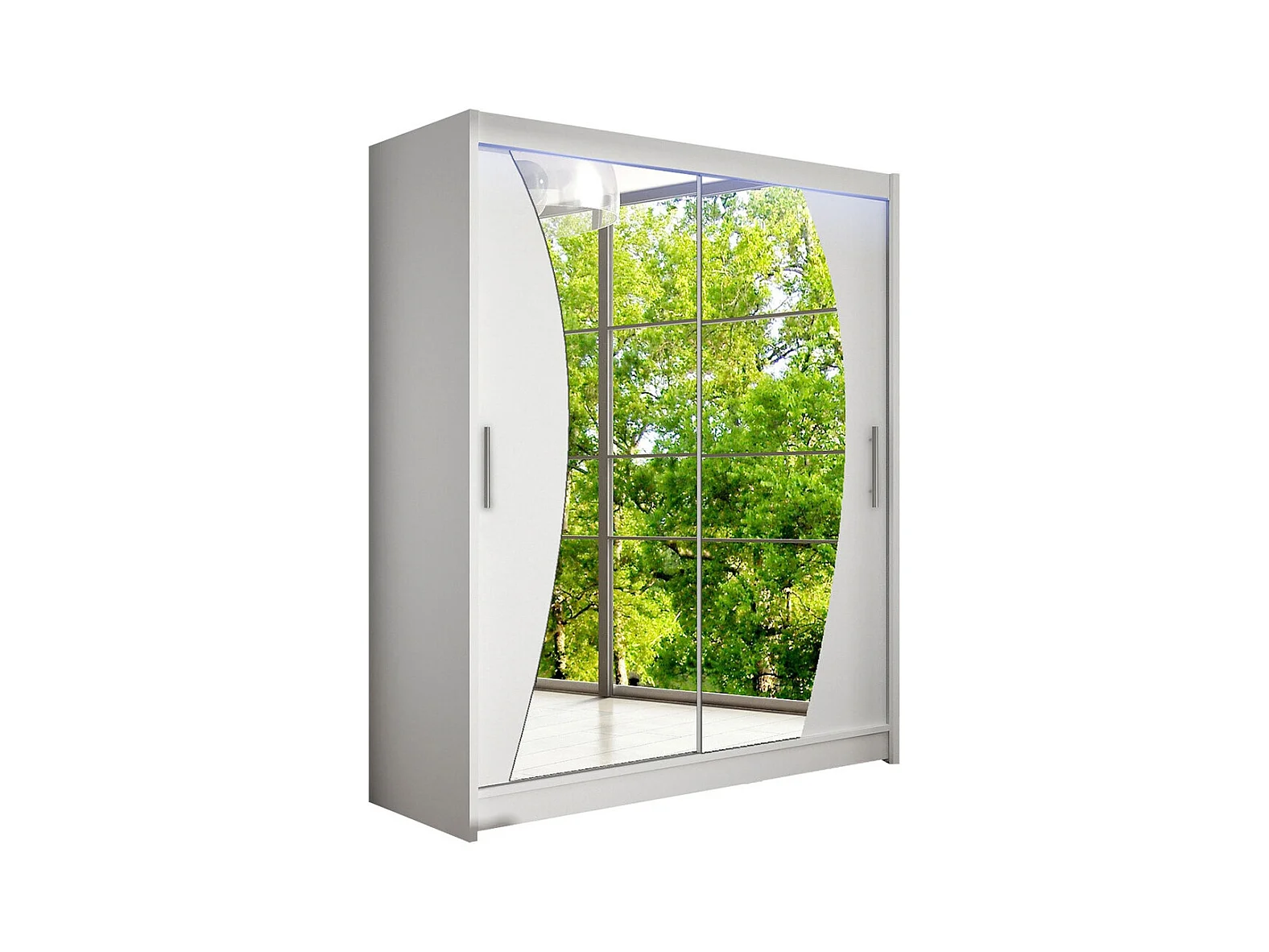 Armoire Closico 110, Blanc, 200x150x58cm, Portes d'armoire: Coulissantes
