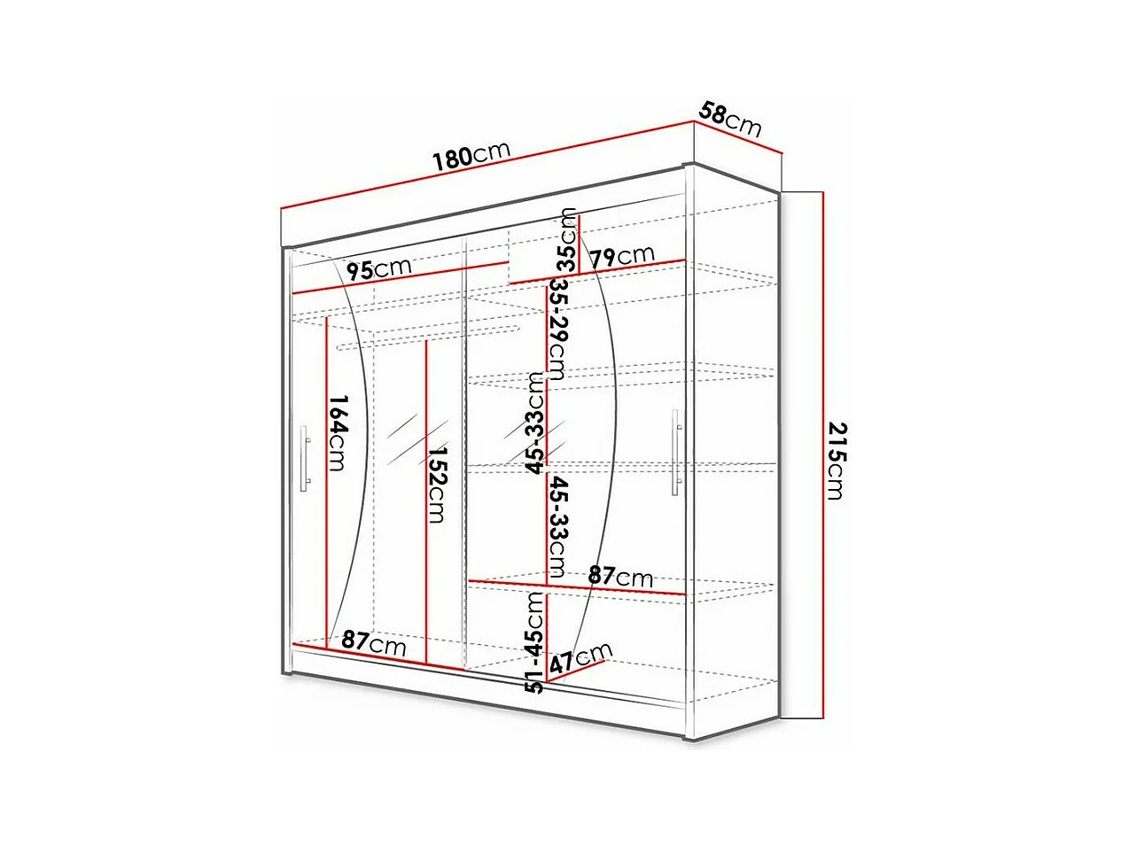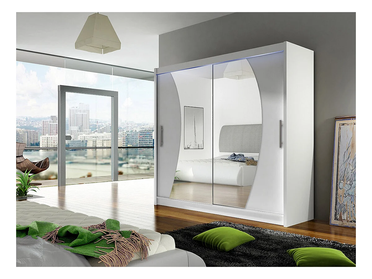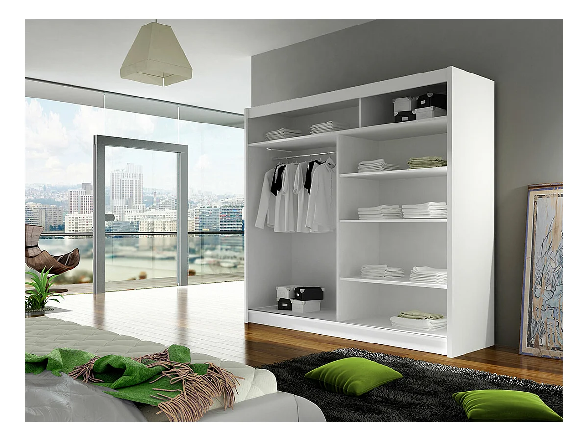 Armoire Closico 115, Blanc, 215x180x58cm, Portes d'armoire: Coulissantes
