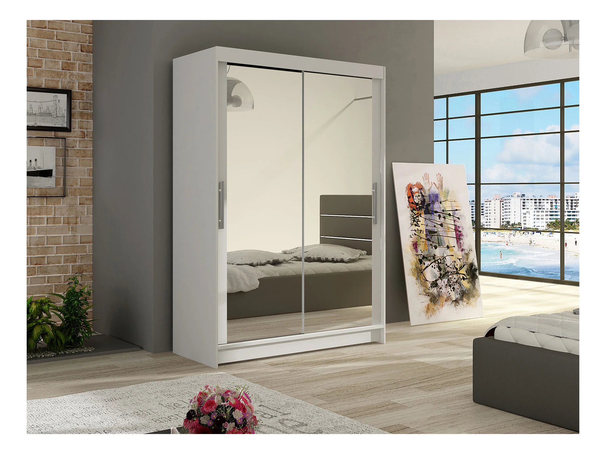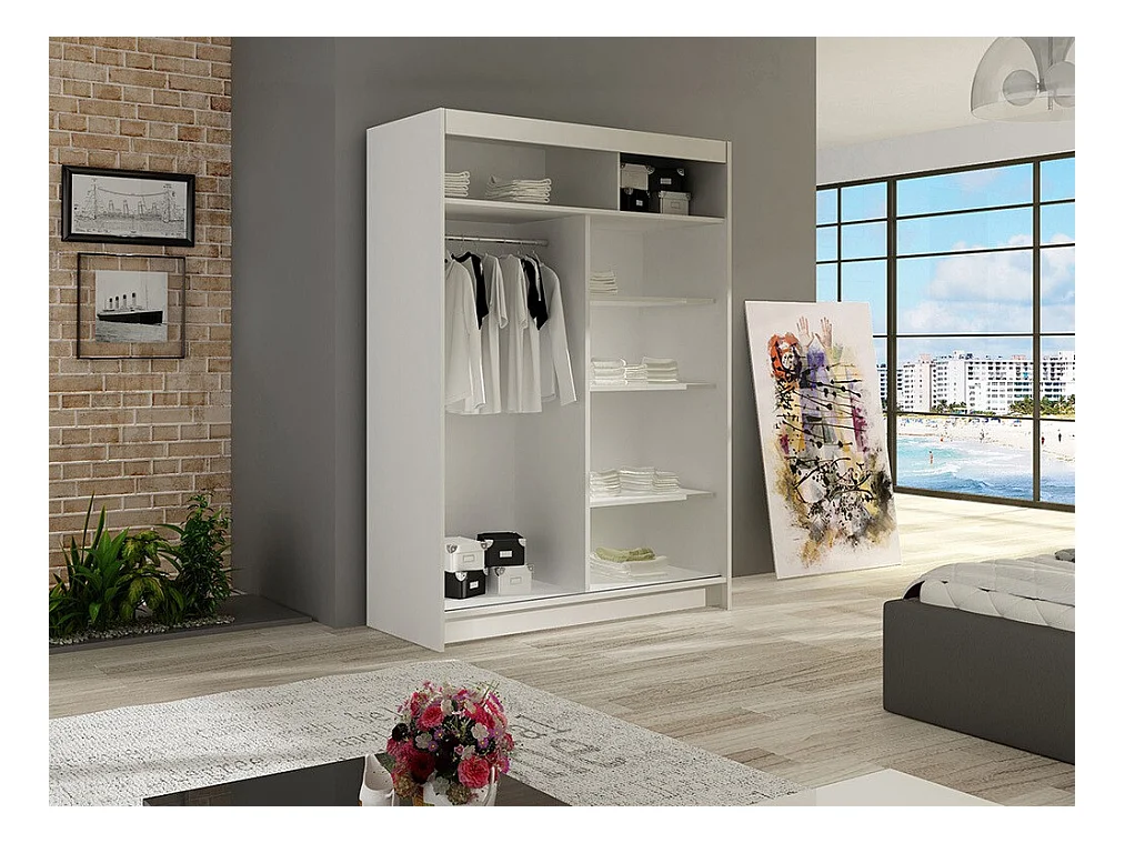 Armoire Closico 129, Blanc, 200x120x58cm, Portes d'armoire: Coulissantes