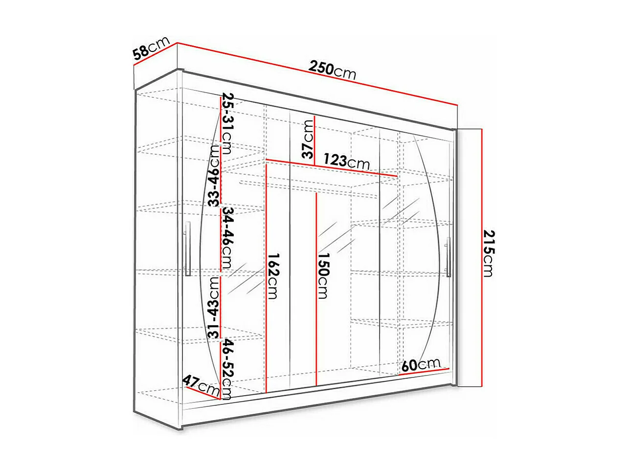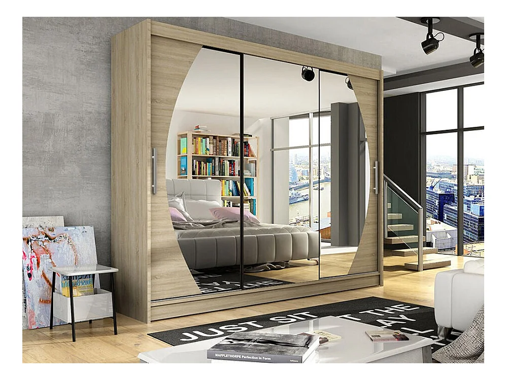 Armoire Closico 130, Sonoma chêne, 215x250x58cm, Portes d'armoire: Coulissantes