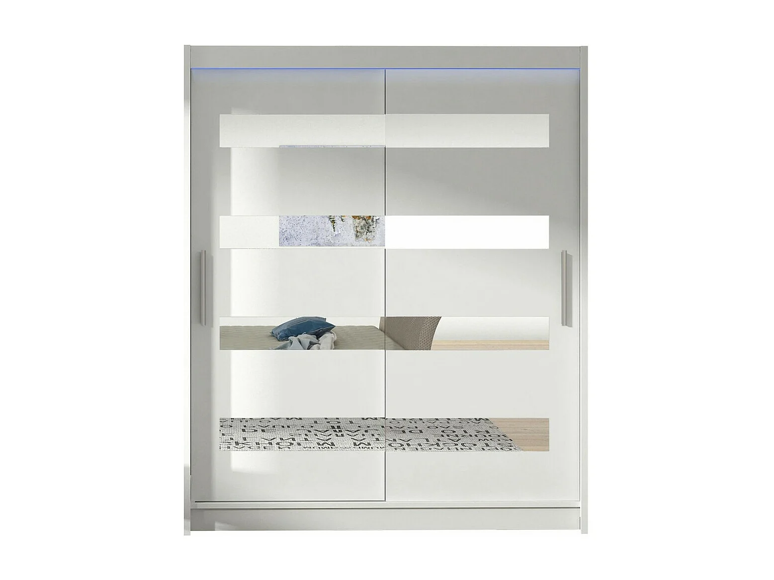 Armoire Closico 136, Blanc, 200x150x58cm, Portes d'armoire: Coulissantes