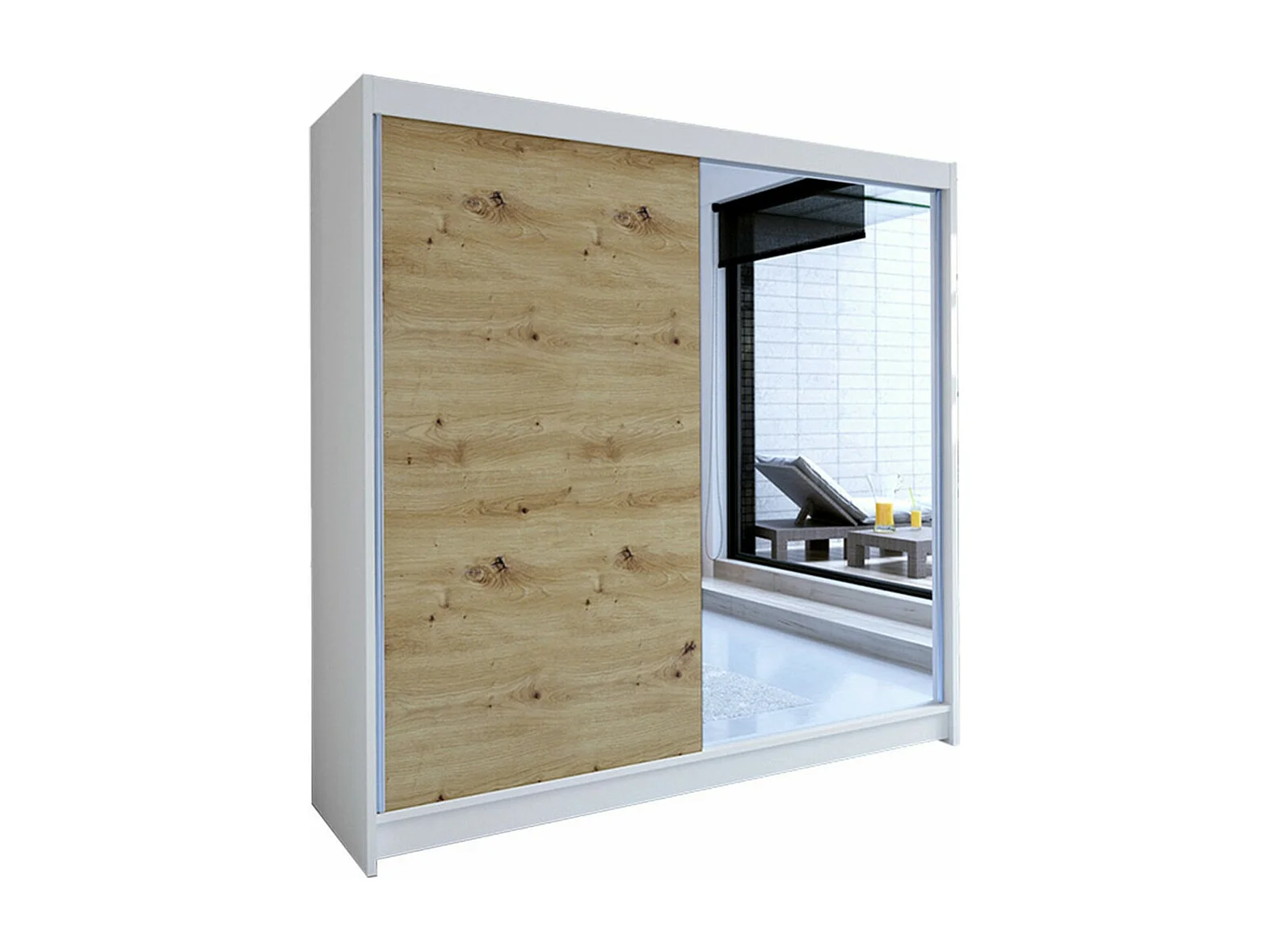 Armoire Closico 137, Chêne Artisan|Blanc, 215x180x58cm, Portes d'armoire: Coulissantes