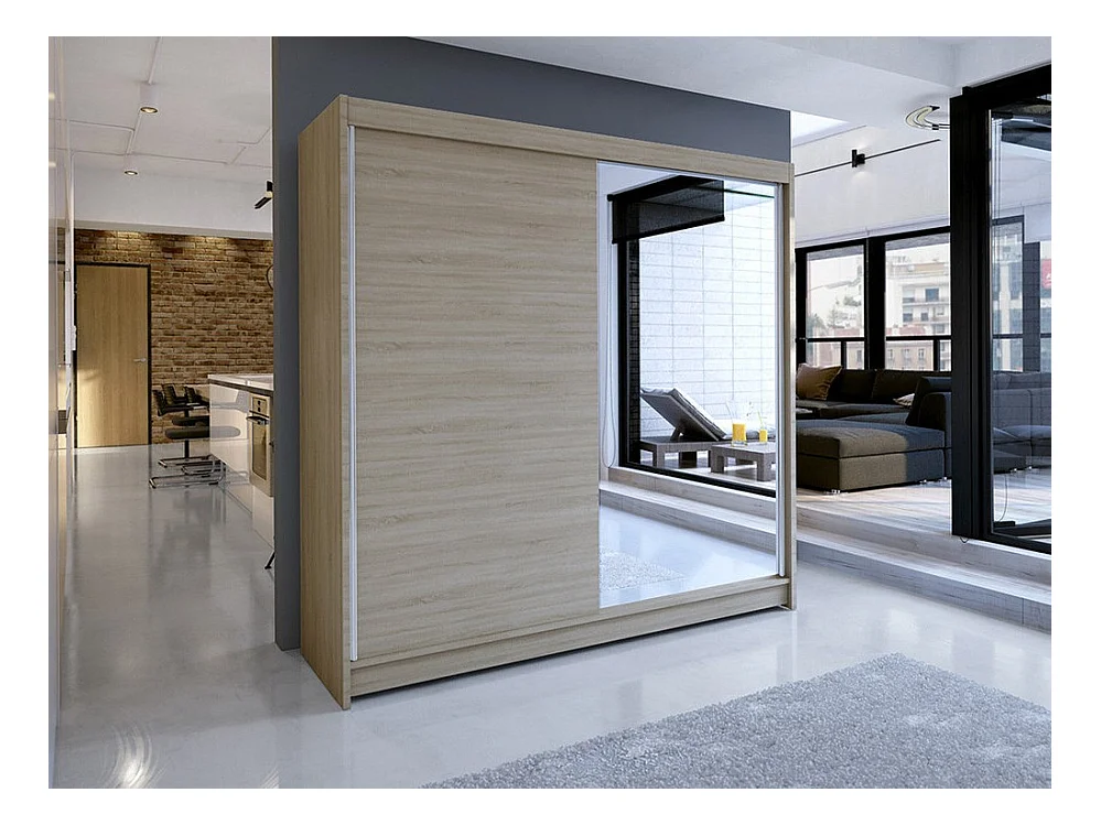 Armoire Closico 137, Sonoma chêne, 215x180x58cm, Portes d'armoire: Coulissantes