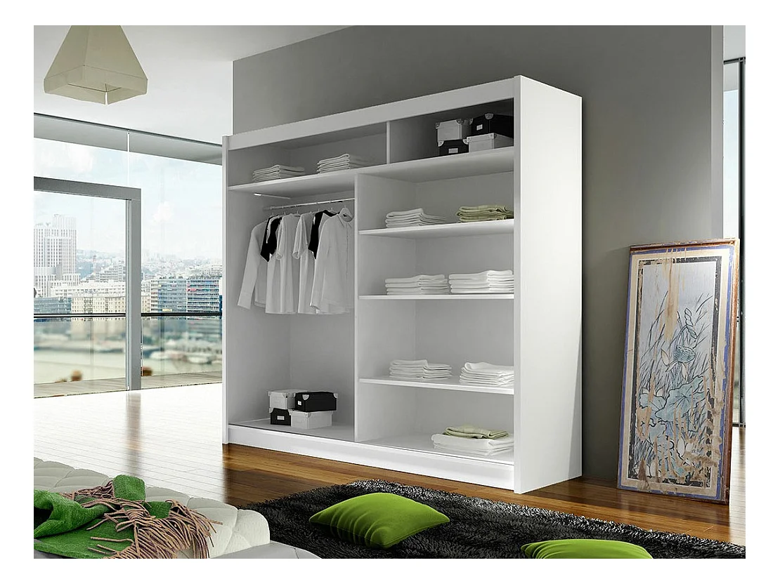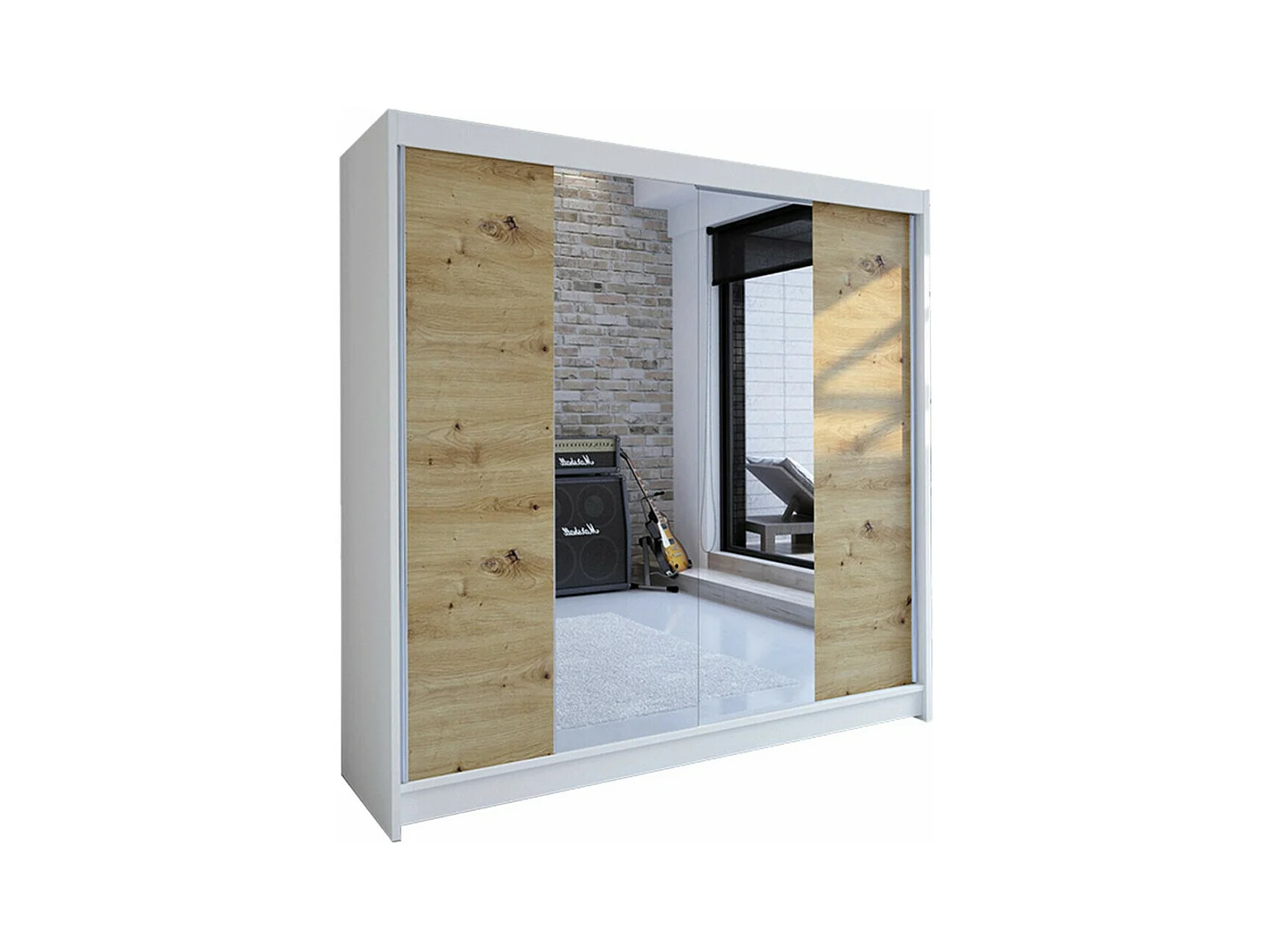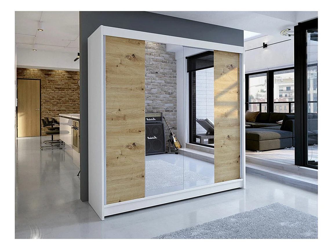 Armoire Closico 138, Chêne Artisan|Blanc, 215x180x58cm, Portes d'armoire: Coulissantes