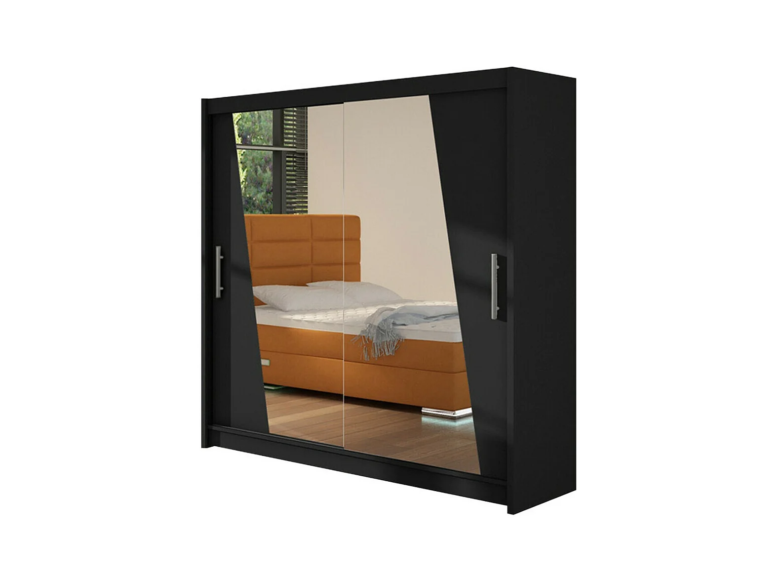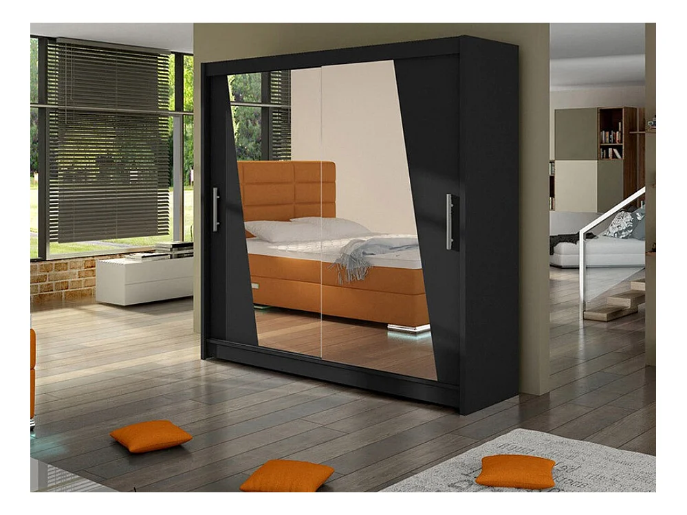Armoire Closico 144, Noir, 215x180x58cm, Portes d'armoire: Coulissantes