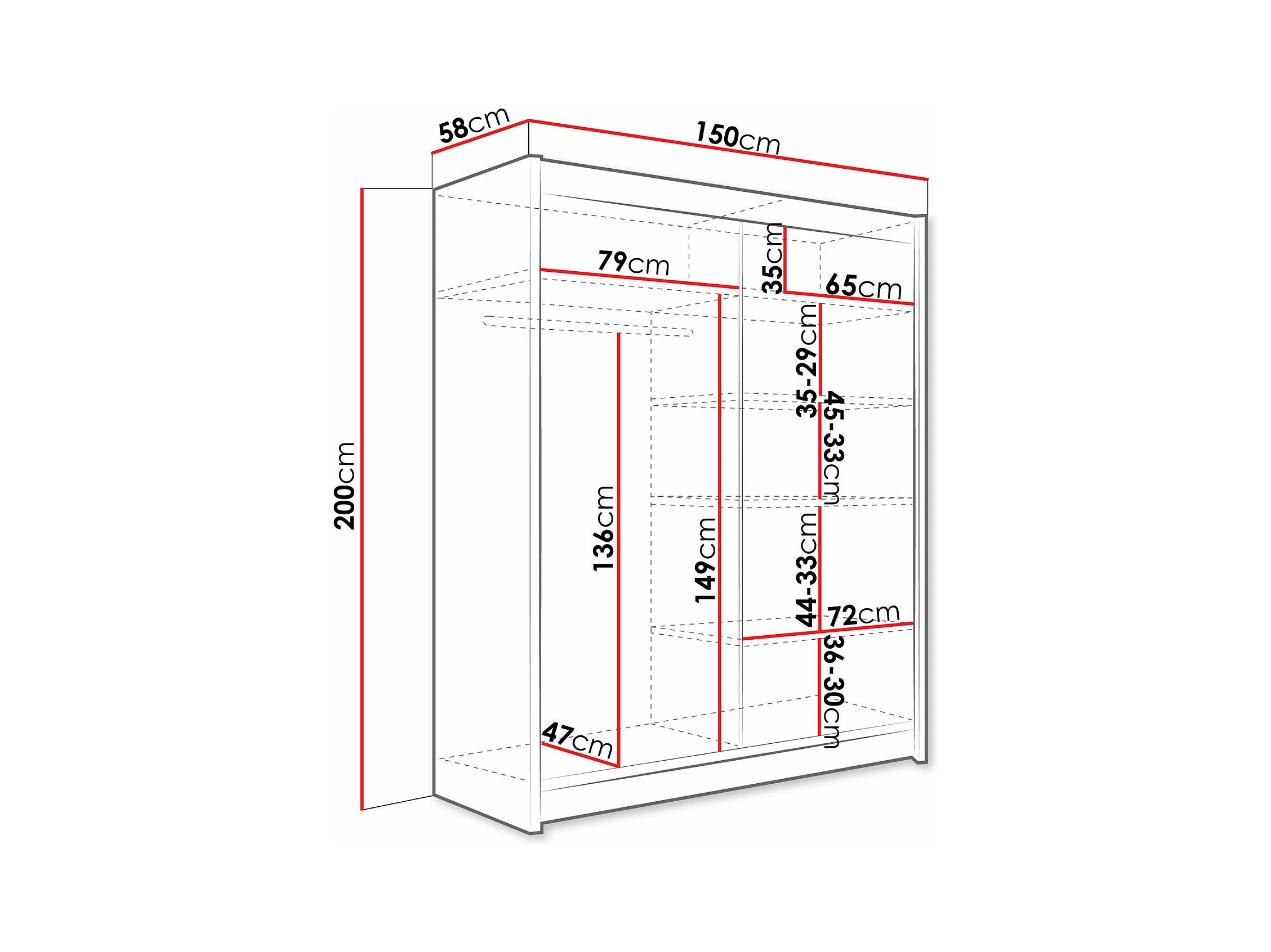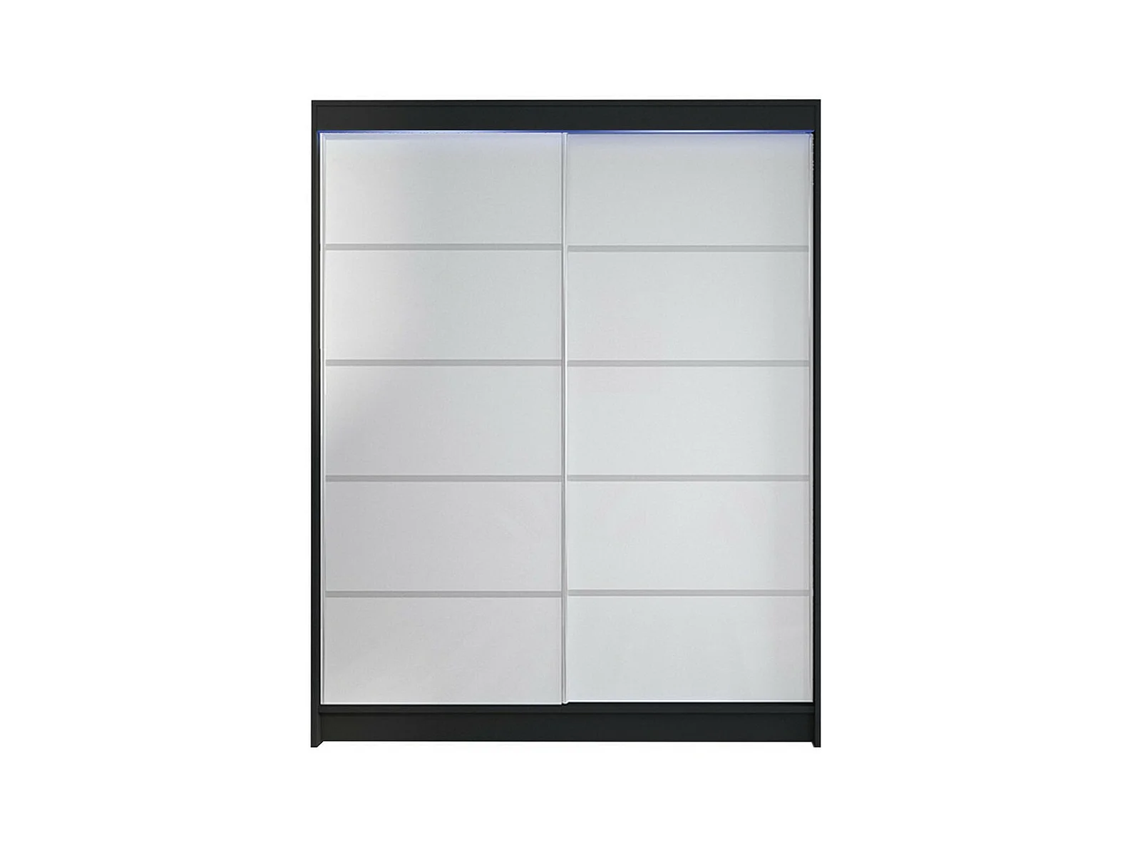 Armoire Closico 145, Noir|Blanc, 200x150x58cm, Portes d'armoire: Coulissantes