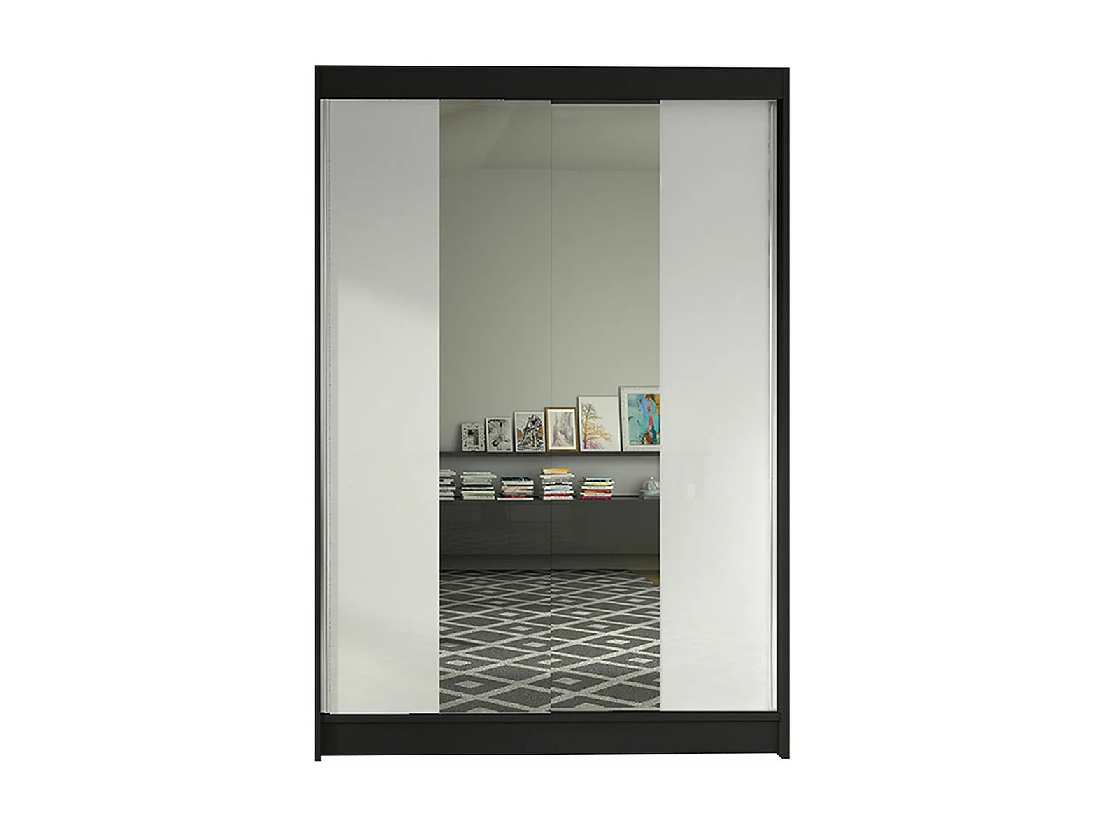 Armoire Closico 148, Noir|Blanc, 200x120x58cm, Portes d'armoire: Coulissantes