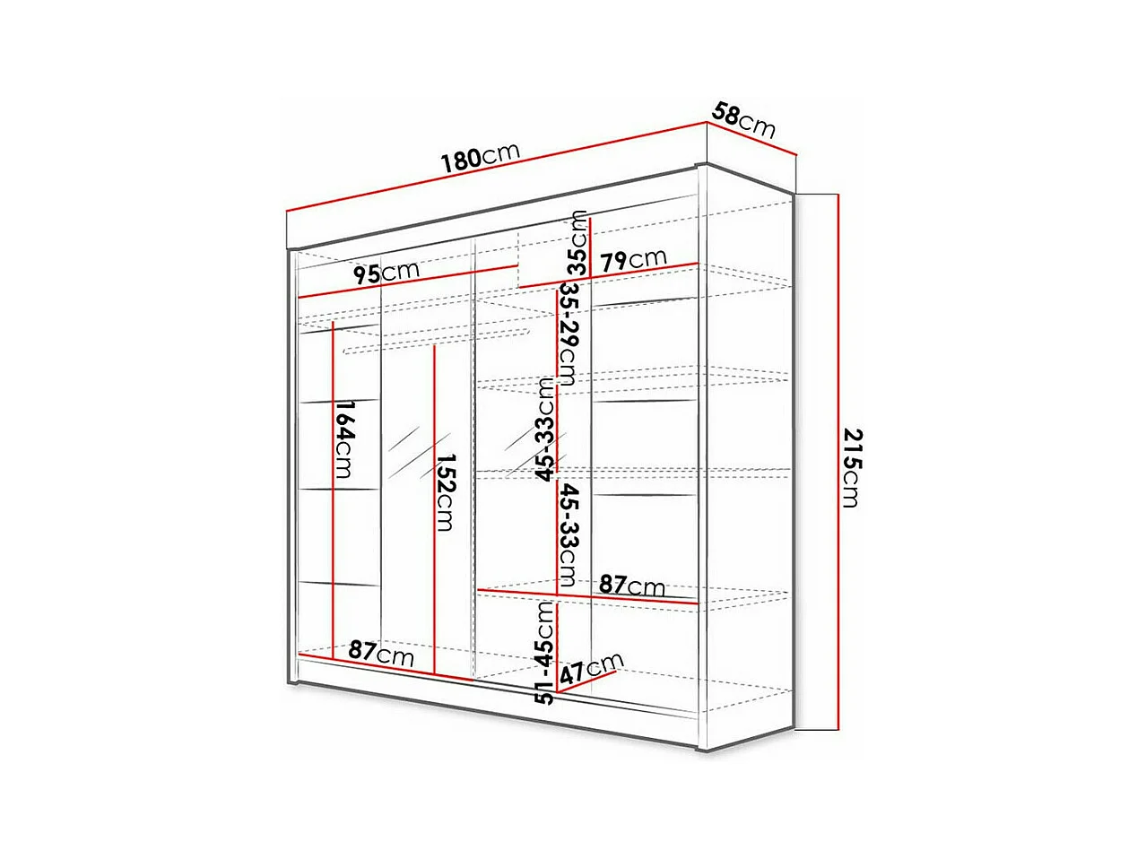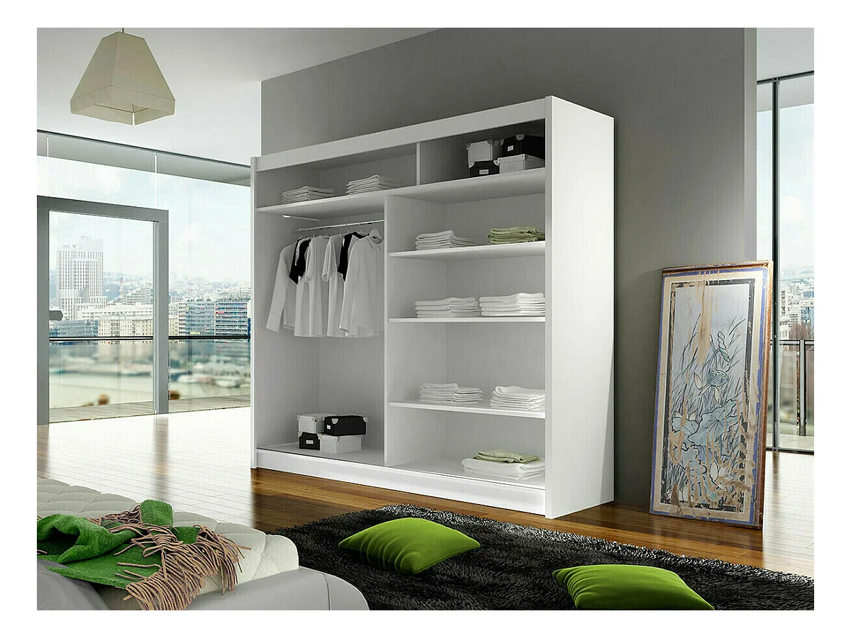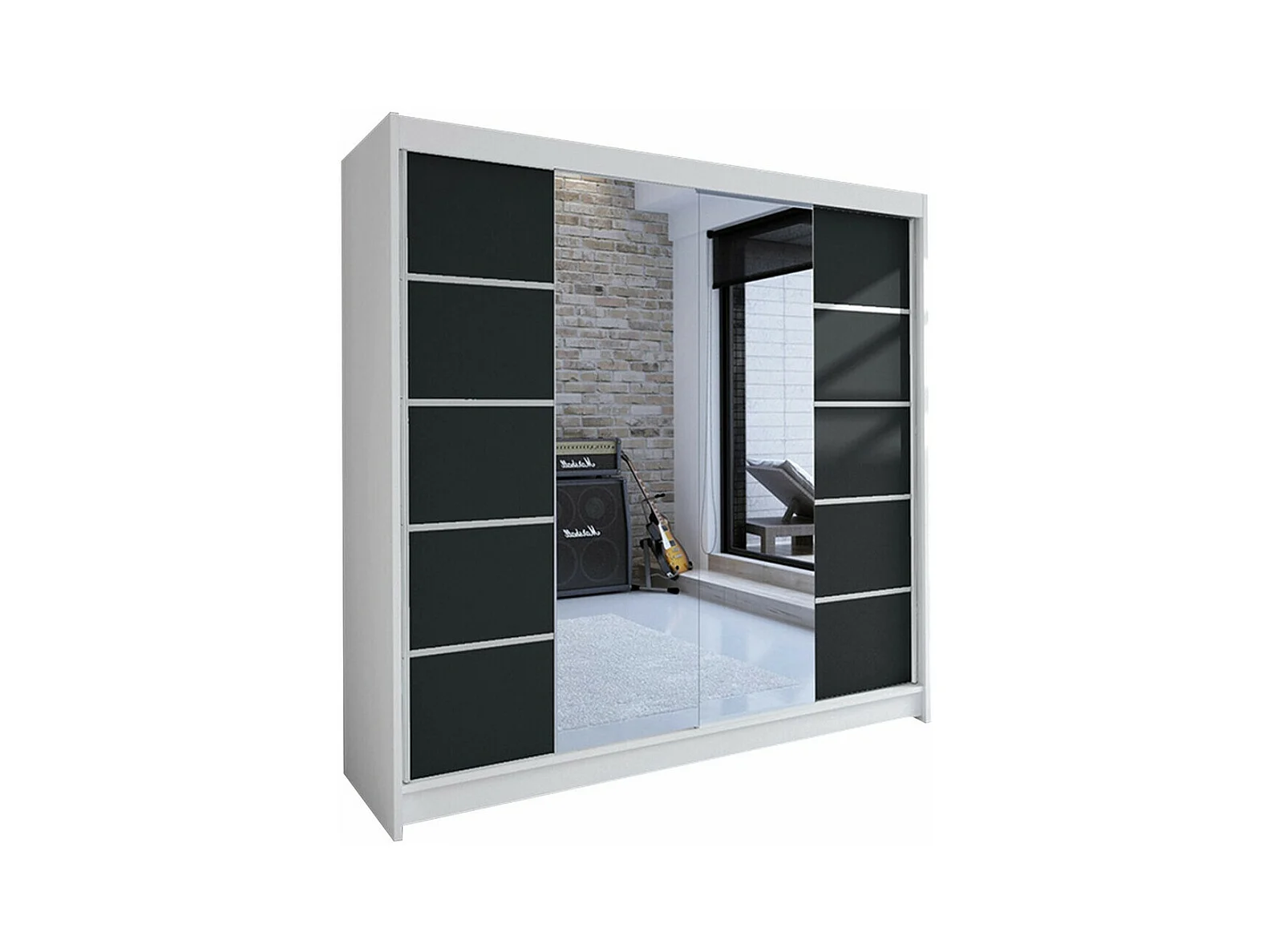 Armoire Closico 154, Blanc|Noir, 215x180x58cm, Portes d'armoire: Coulissantes