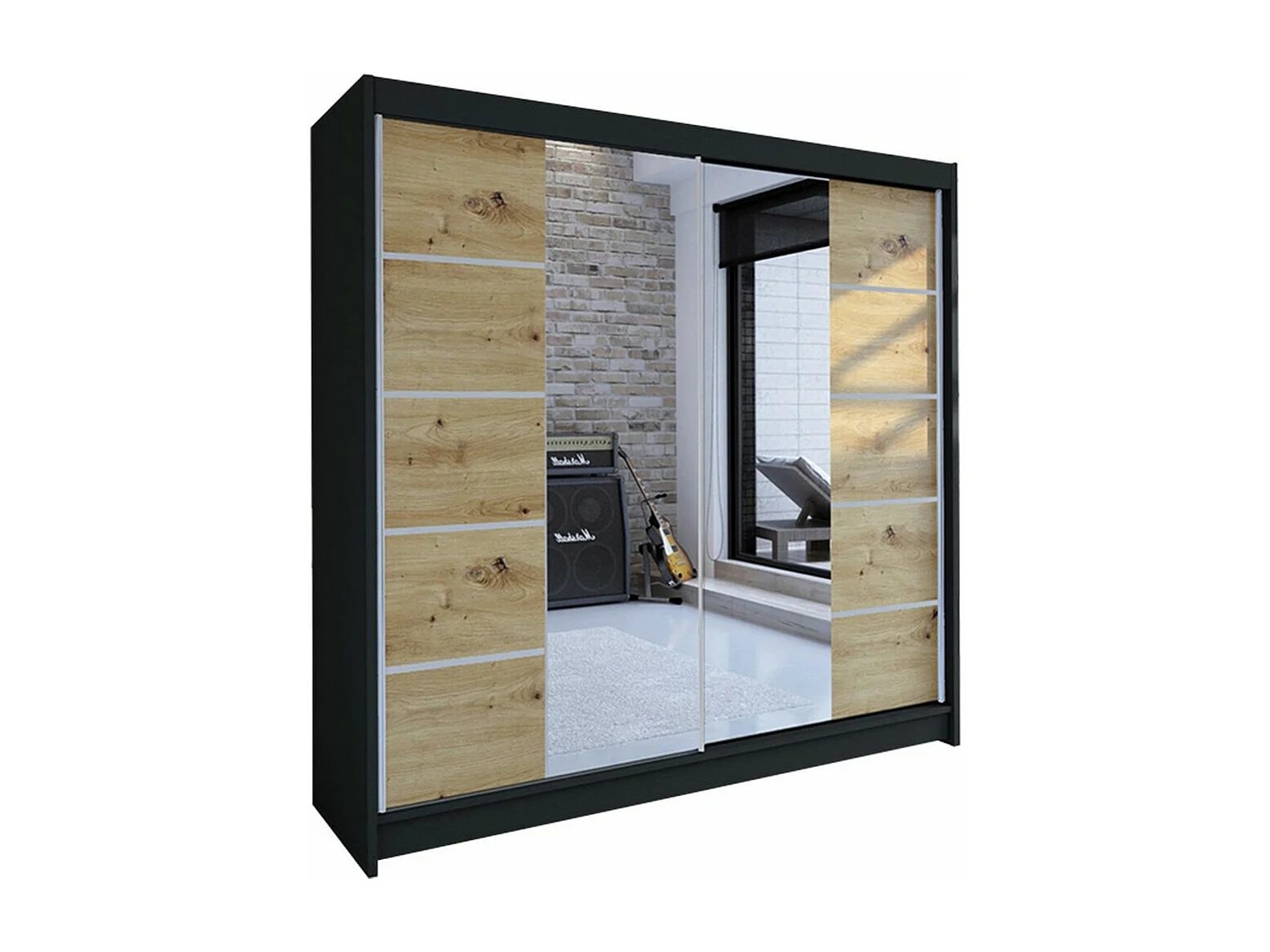 Armoire Closico 154, Noir|Chêne Artisan, 215x180x58cm, Portes d'armoire: Coulissantes