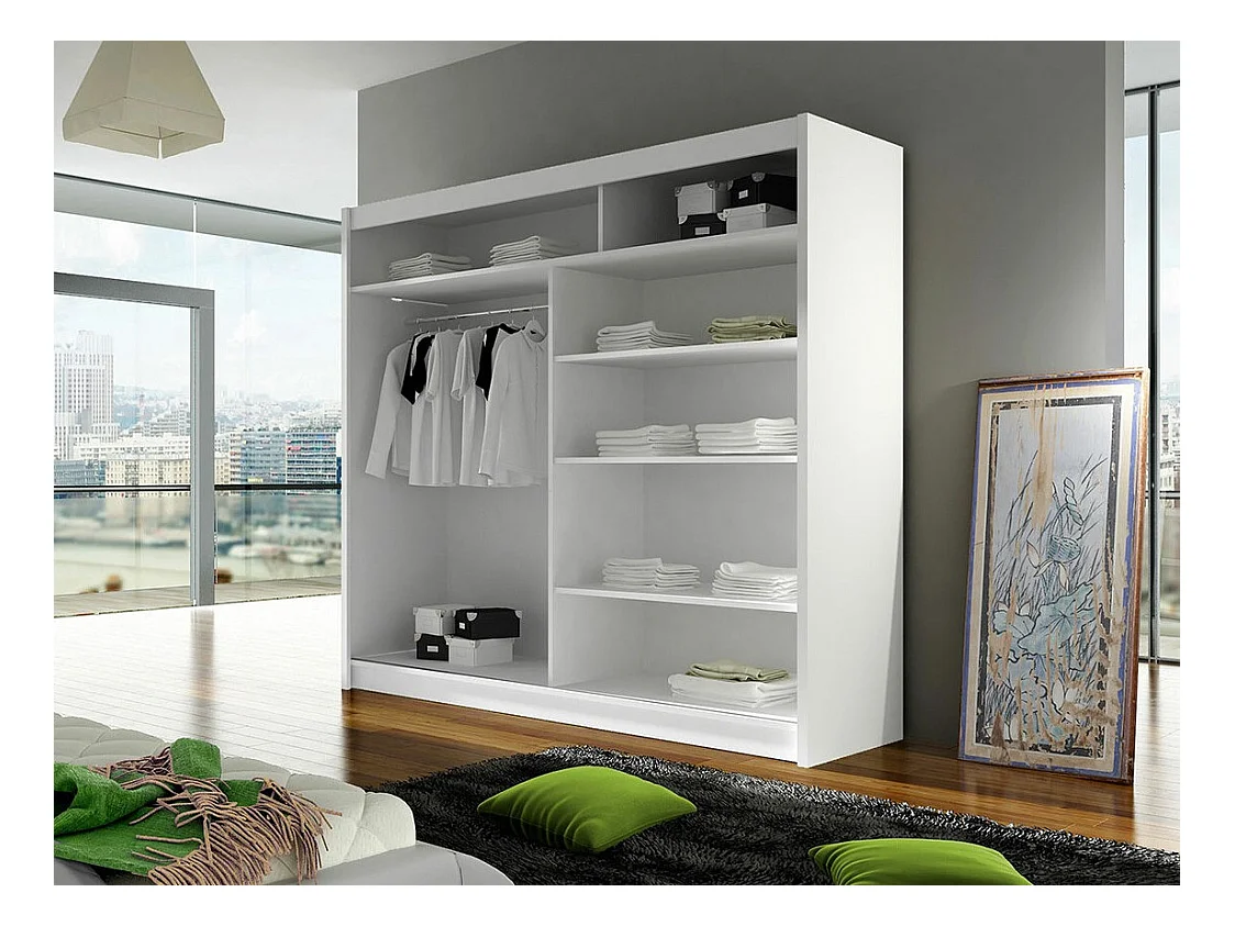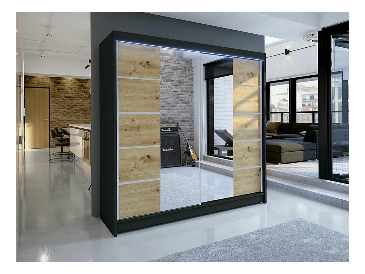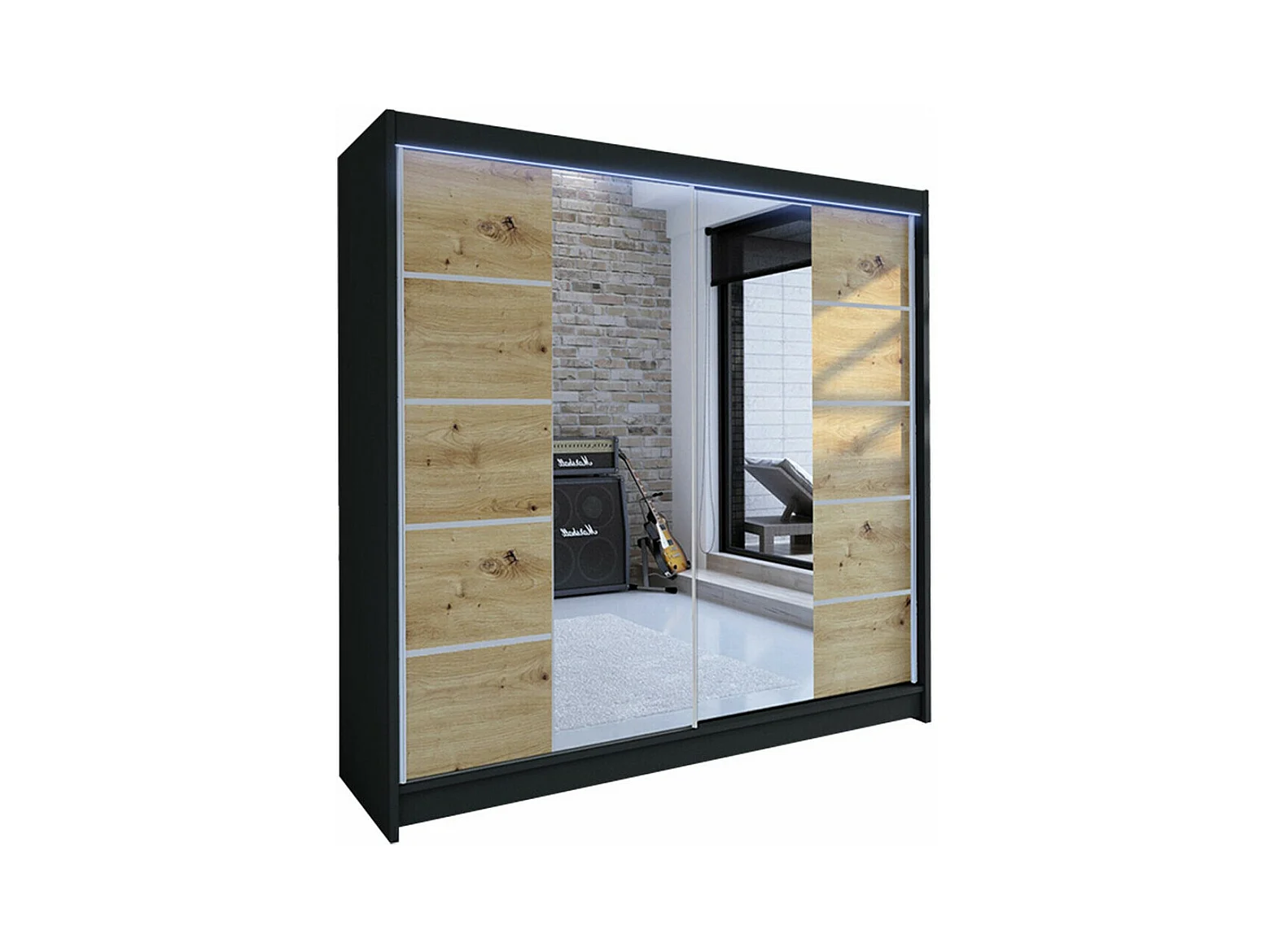 Armoire Closico 154, Noir|Chêne Artisan, 215x180x58cm, Portes d'armoire: Coulissantes