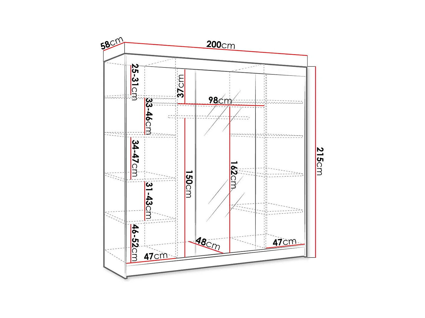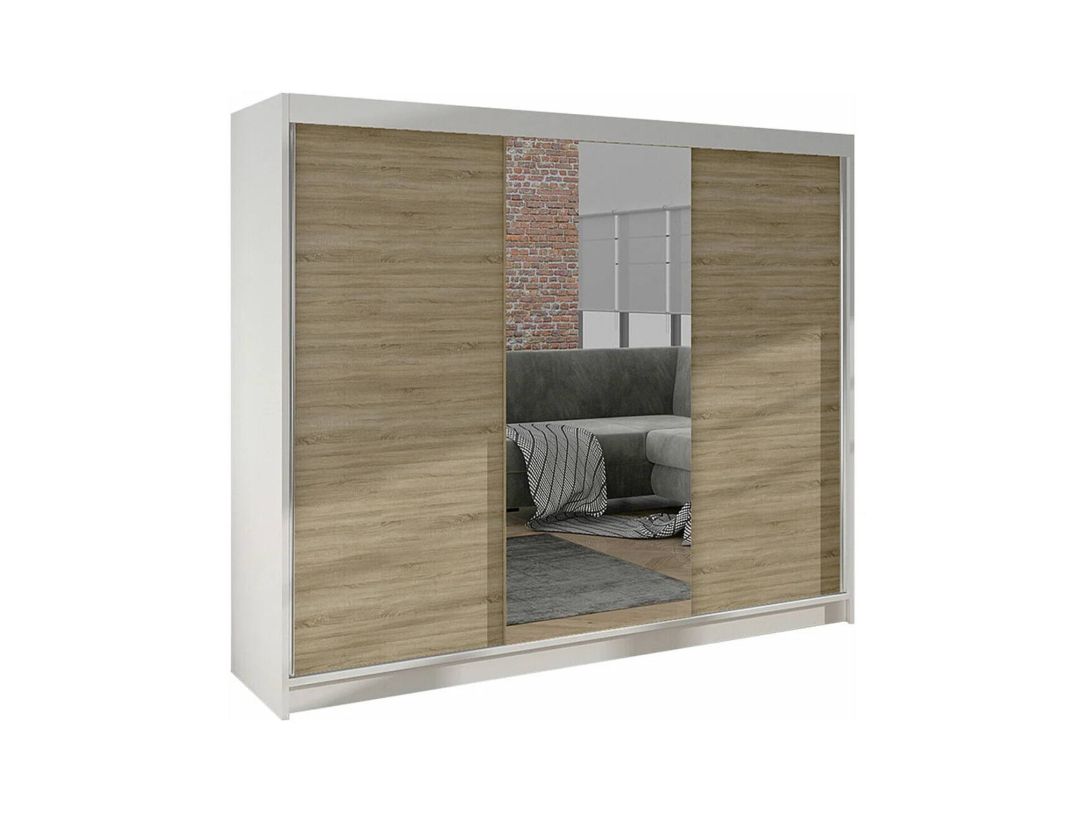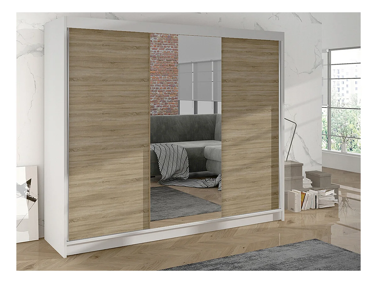 Armoire Closico 158, Blanc|Sonoma chêne, 215x200x58cm, Portes d'armoire: Coulissantes