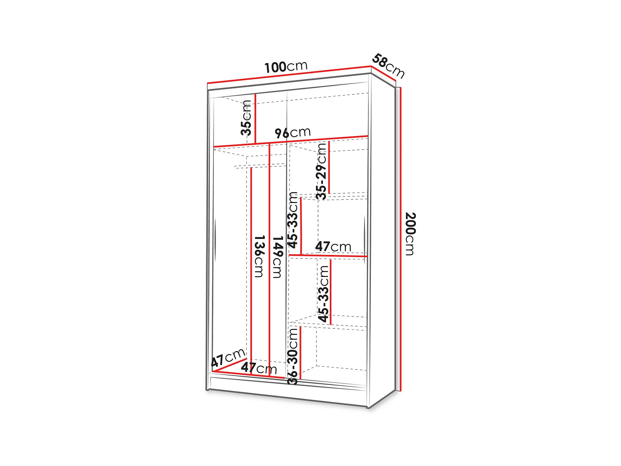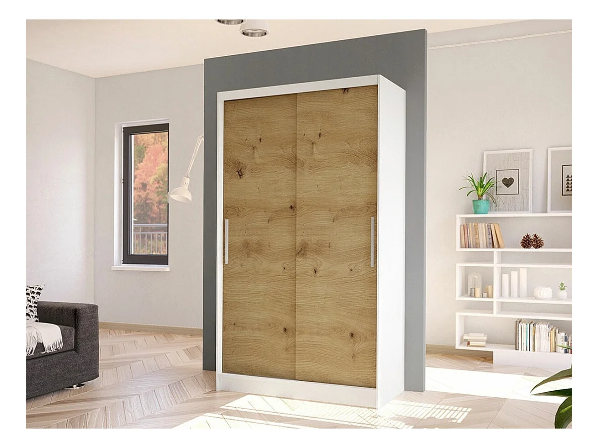 Armoire Closico 162, Chêne Artisan|Blanc, 200x100x58cm, Portes d'armoire: Coulissantes