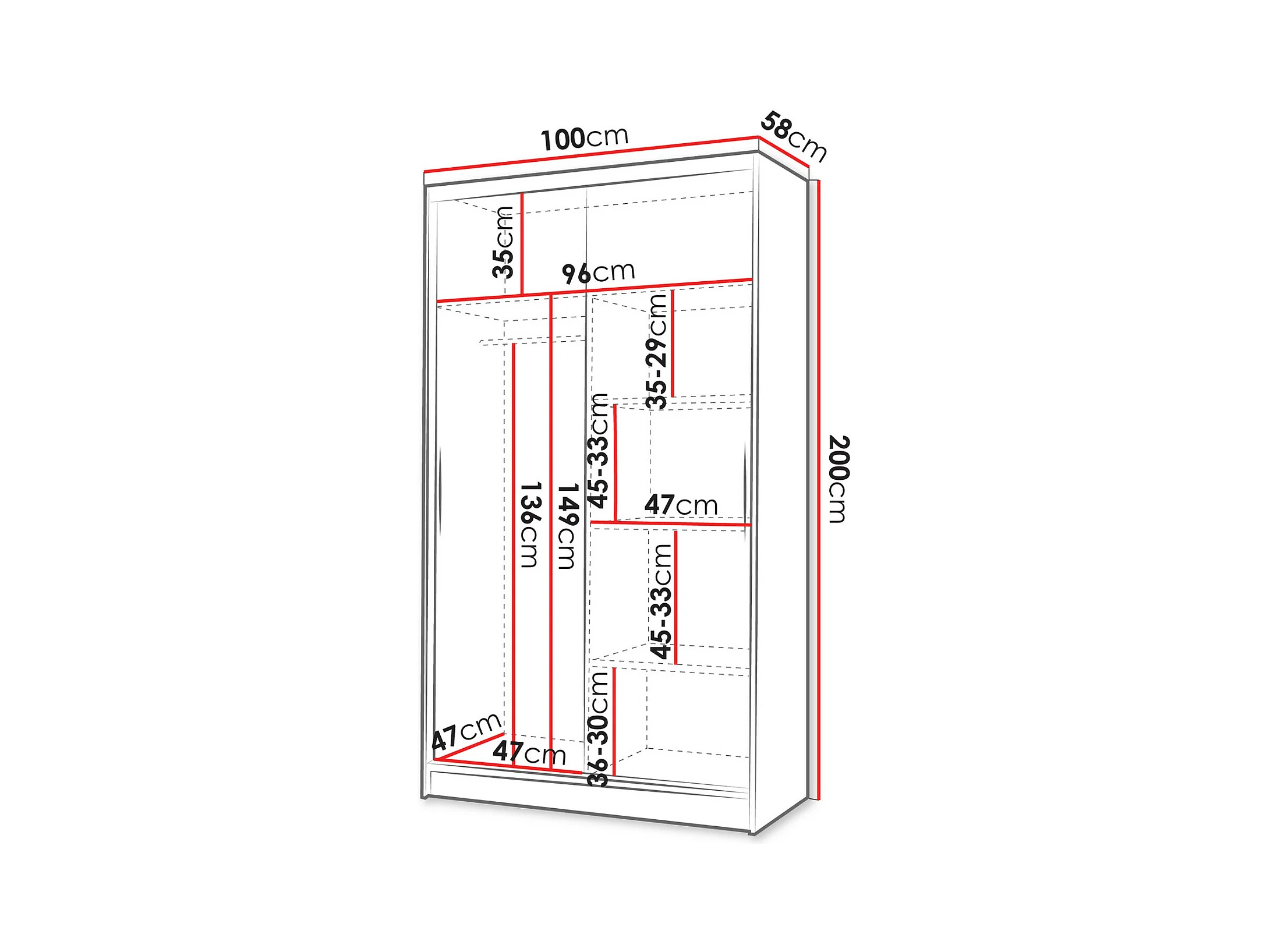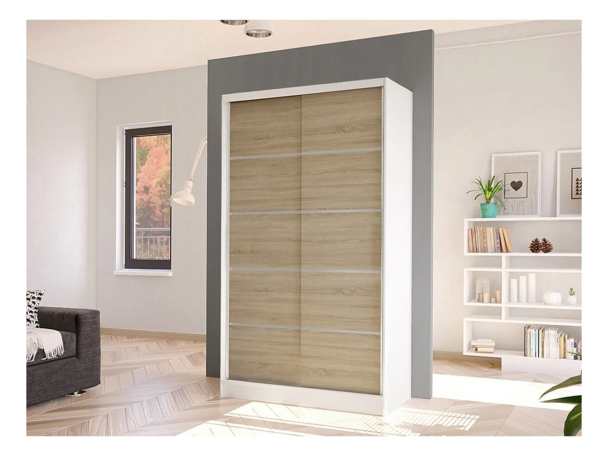 Armoire Closico 167, Blanc|Sonoma chêne, 200x100x58cm, Portes d'armoire: Coulissantes