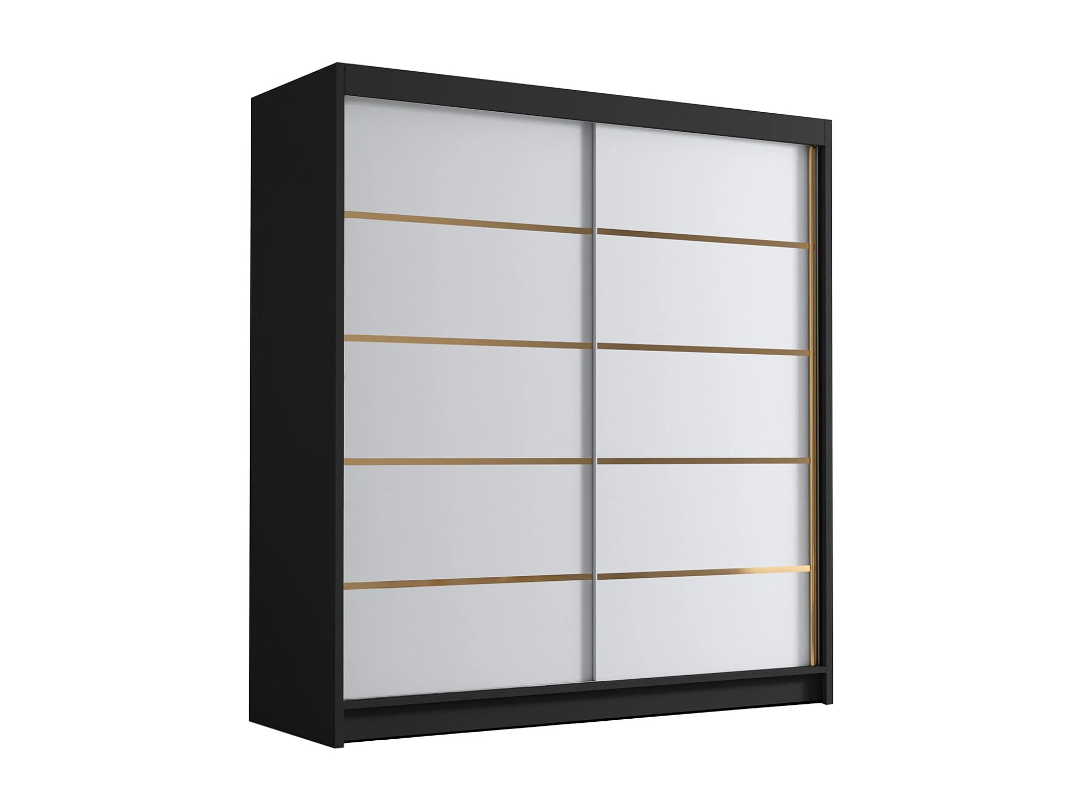Armoire Closico 186, Blanc|Noir, 215x180x58cm, Portes d'armoire: Coulissantes