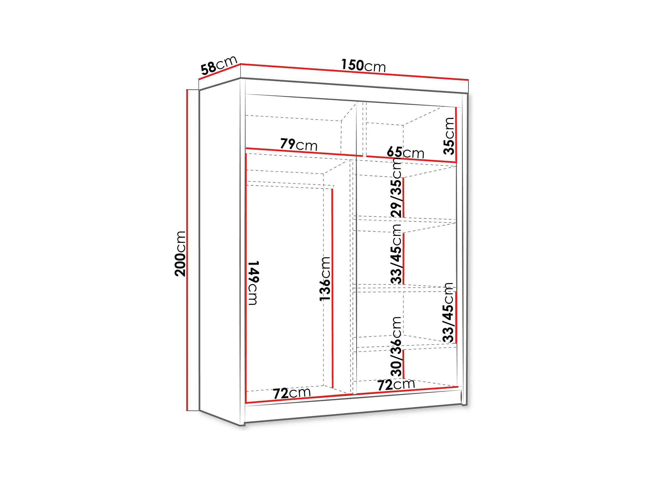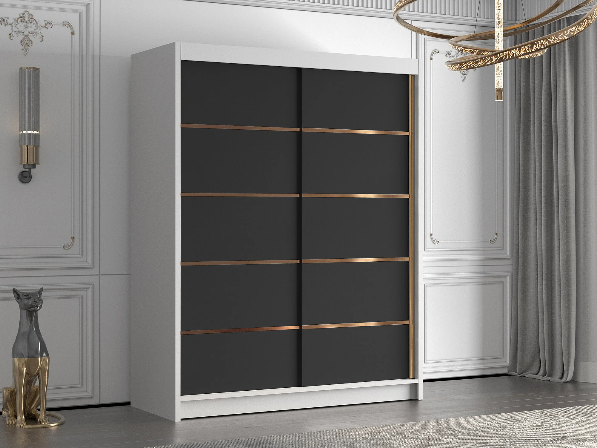 Armoire Closico 187, Noir|Blanc, 200x150x58cm, Portes d'armoire: Coulissantes