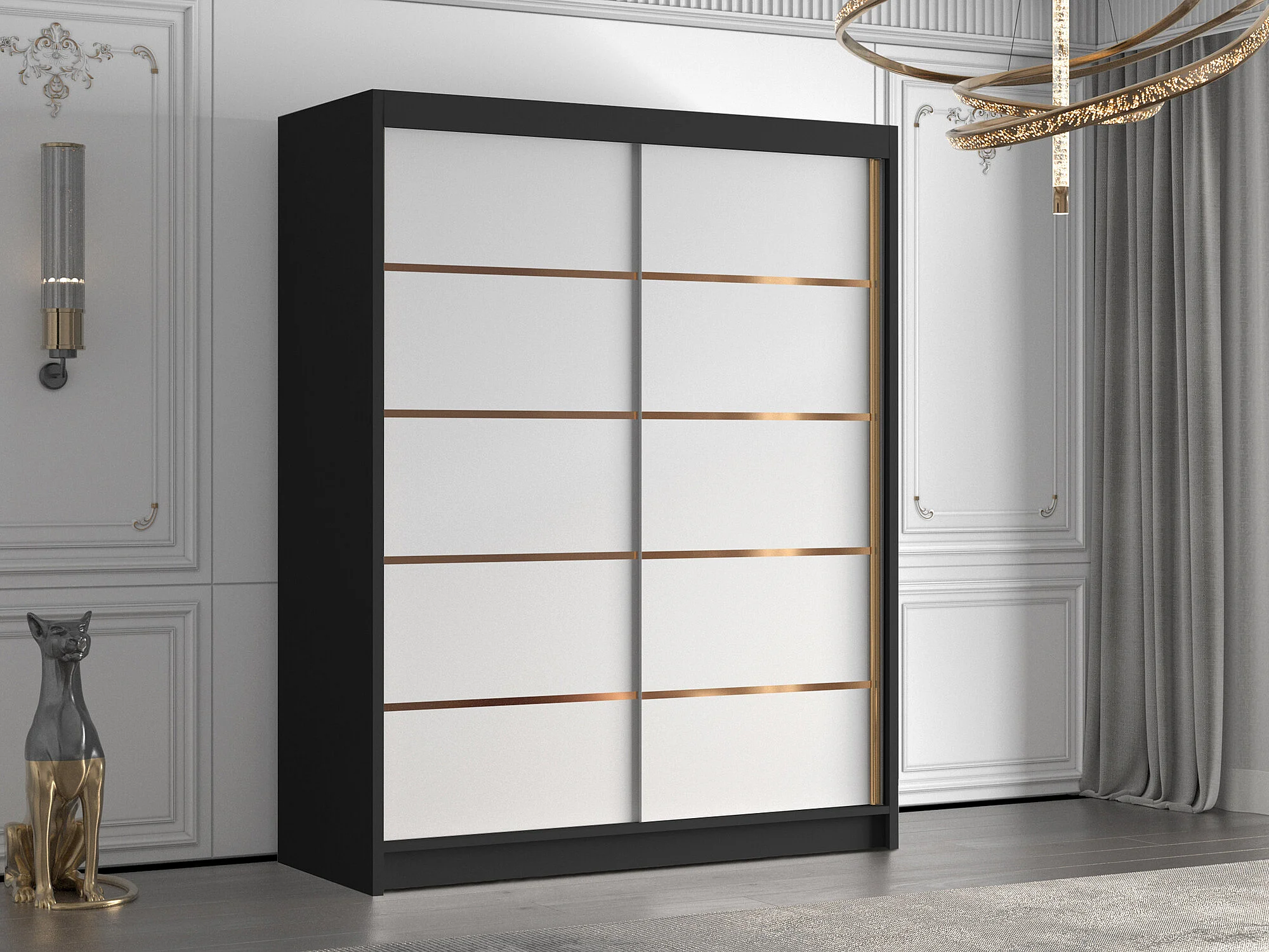 Armoire Closico 187, Blanc|Noir, 200x150x58cm, Portes d'armoire: Coulissantes