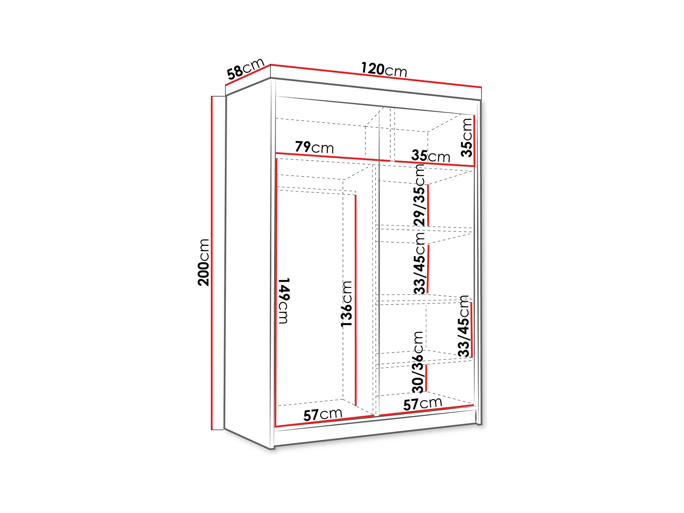 Armoire Closico 188, Blanc|Noir, 200x120x58cm, Portes d'armoire: Coulissantes
