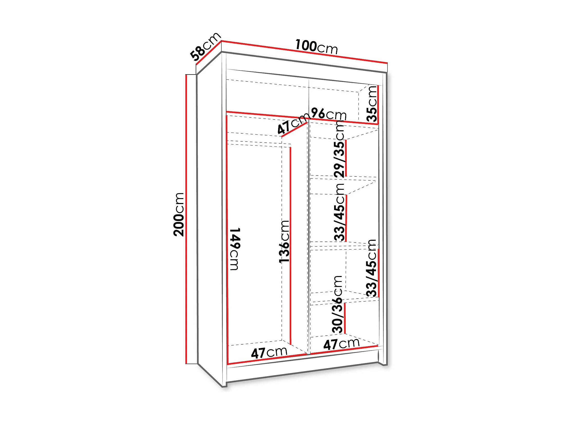 Armoire Closico 189, Blanc|Noir, 200x100x58cm, Portes d'armoire: Coulissantes