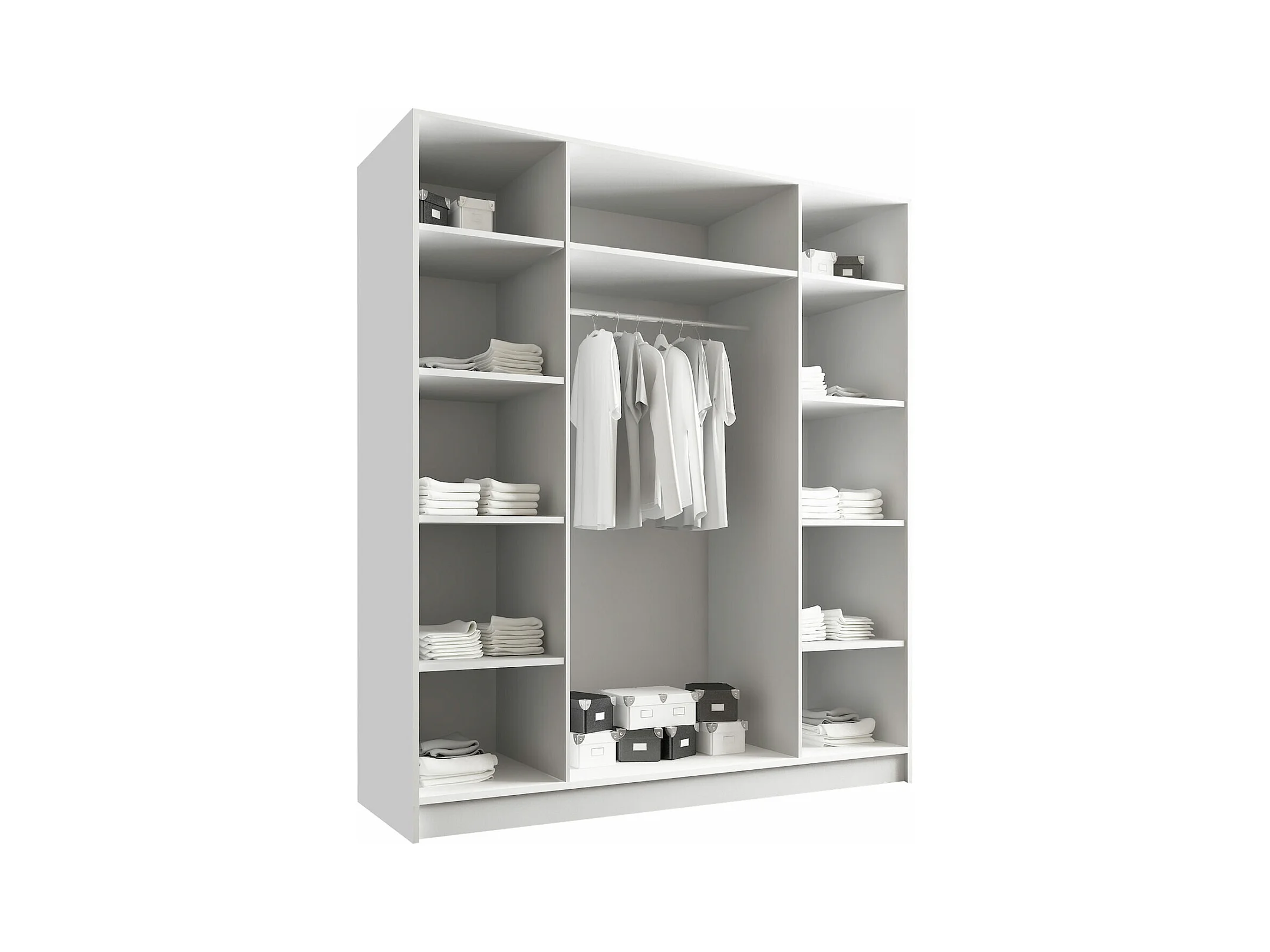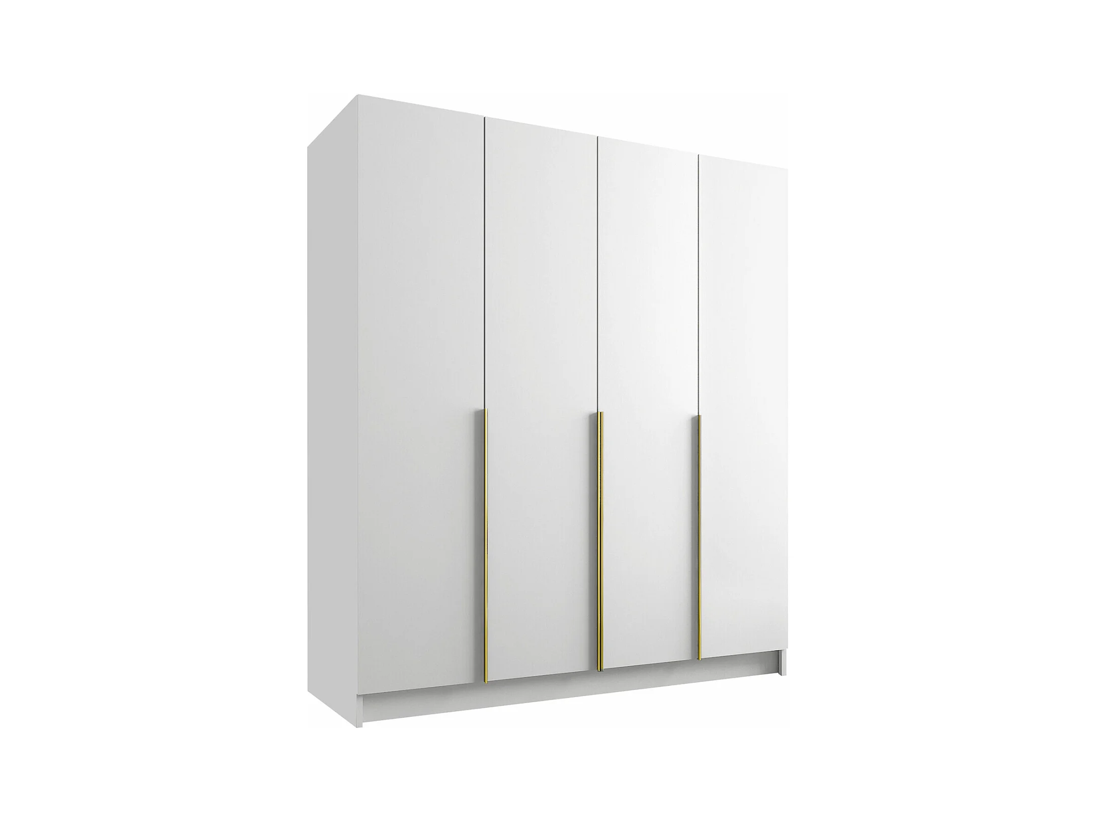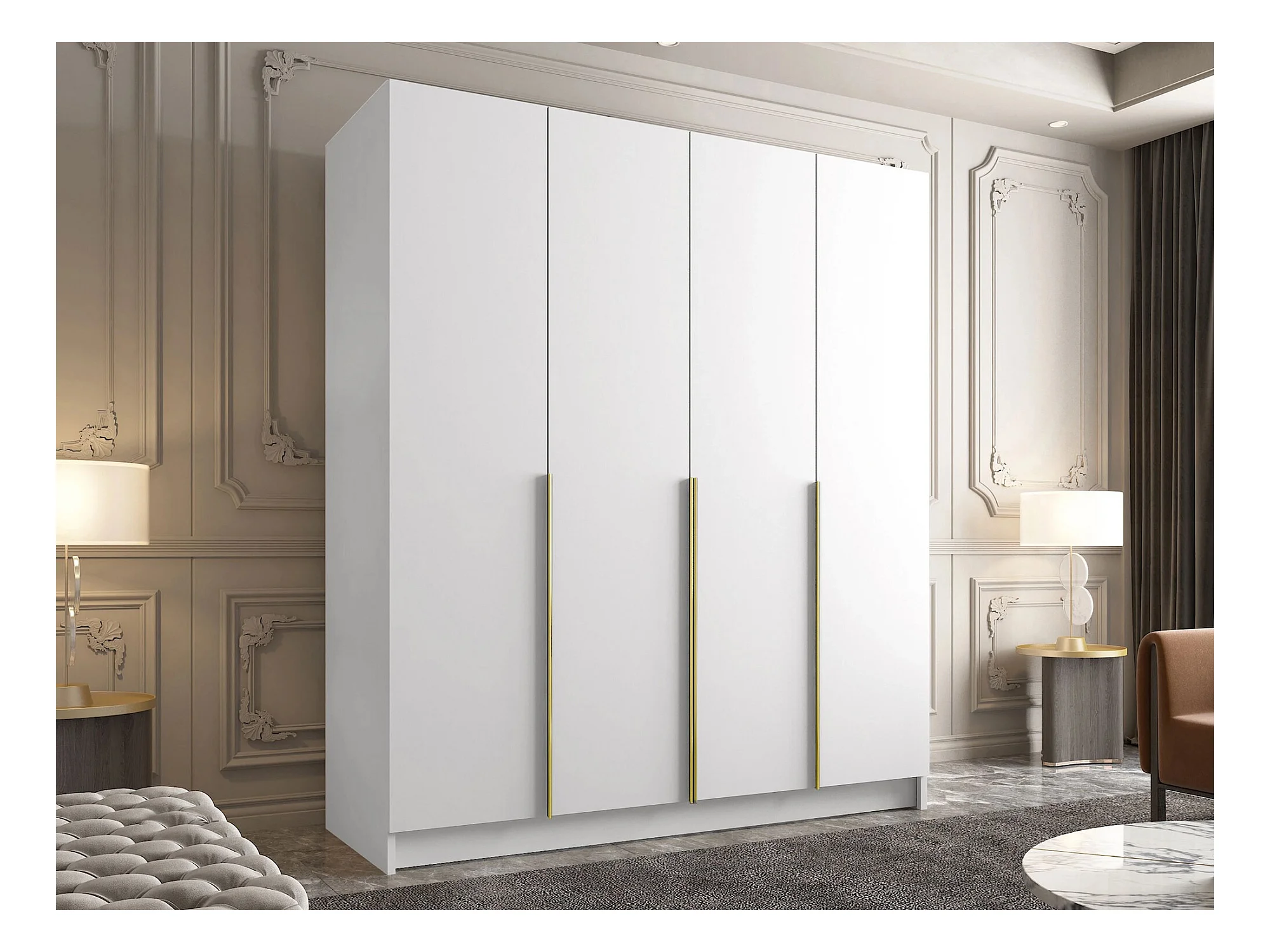 Armoire Closico 192, Blanc|Doré, 215x200x58cm, Portes d'armoire: Avec des charnières