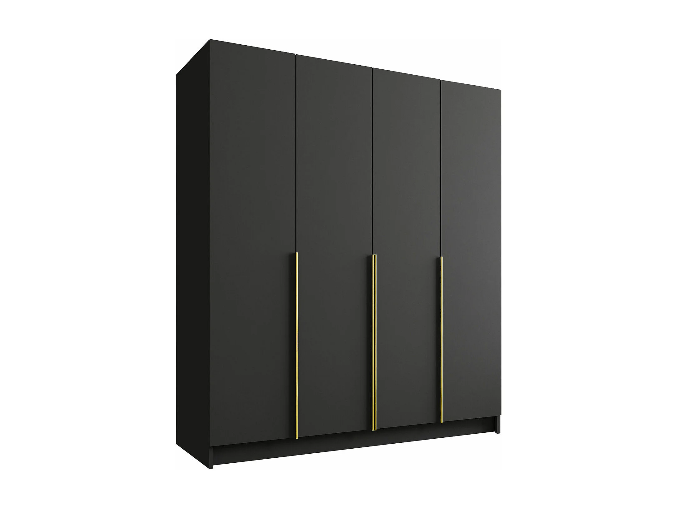 Armoire Closico 192, Noir|Doré, 215x200x58cm, Portes d'armoire: Avec des charnières