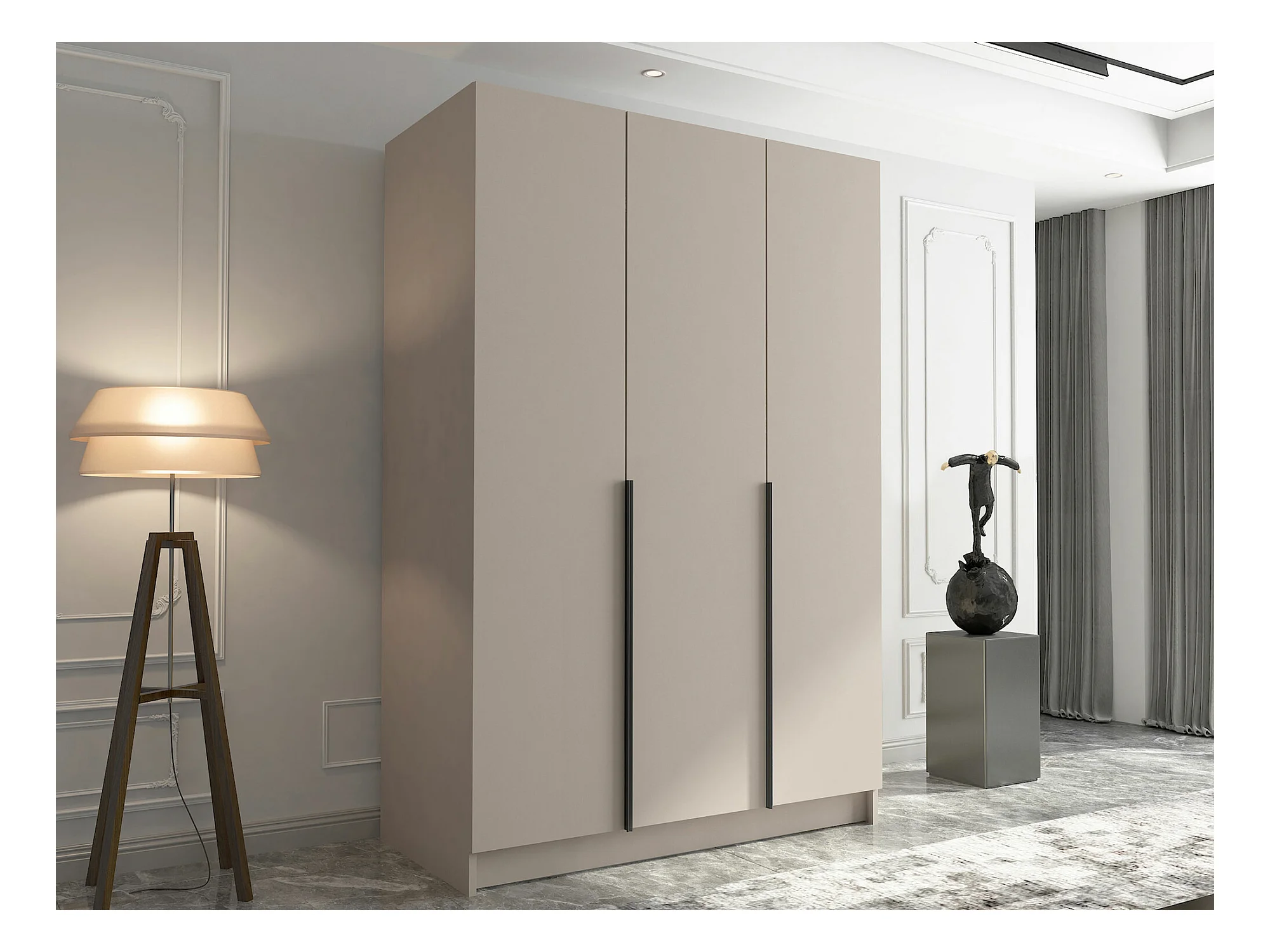 Armoire Closico 198, Noir|Cachemire, 215x150x58cm, Portes d'armoire: Avec des charnières