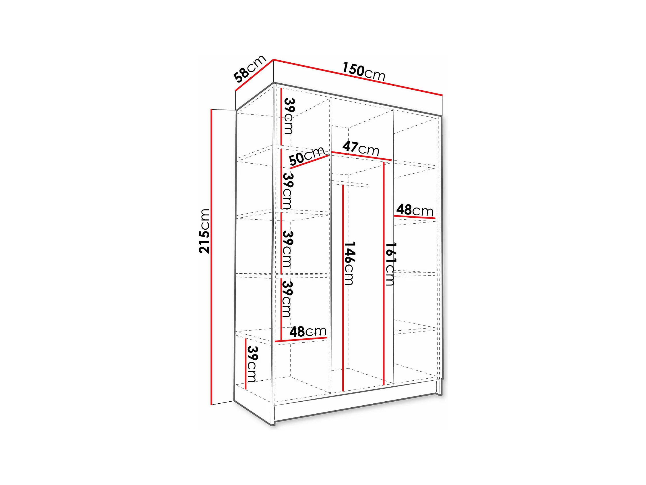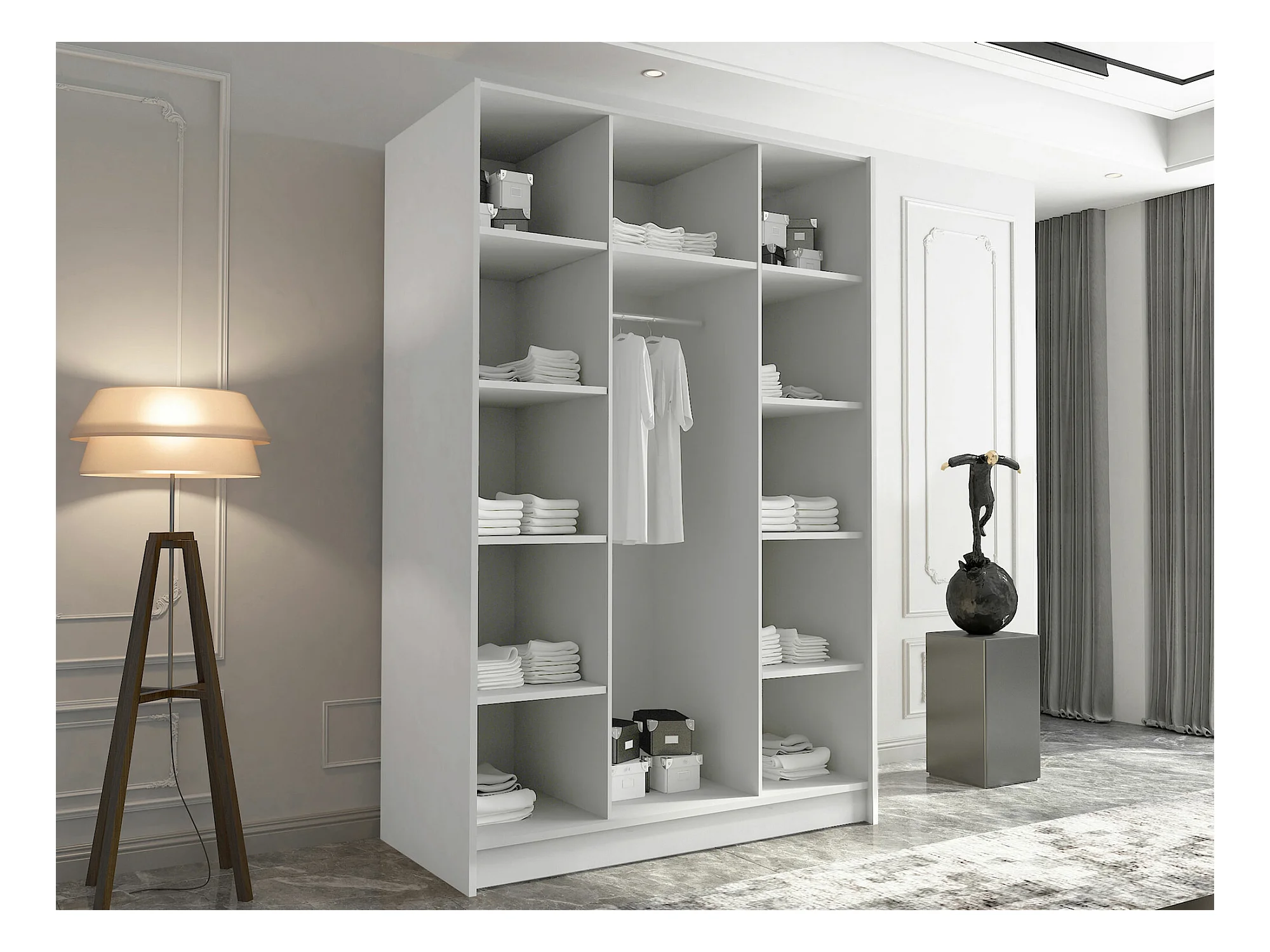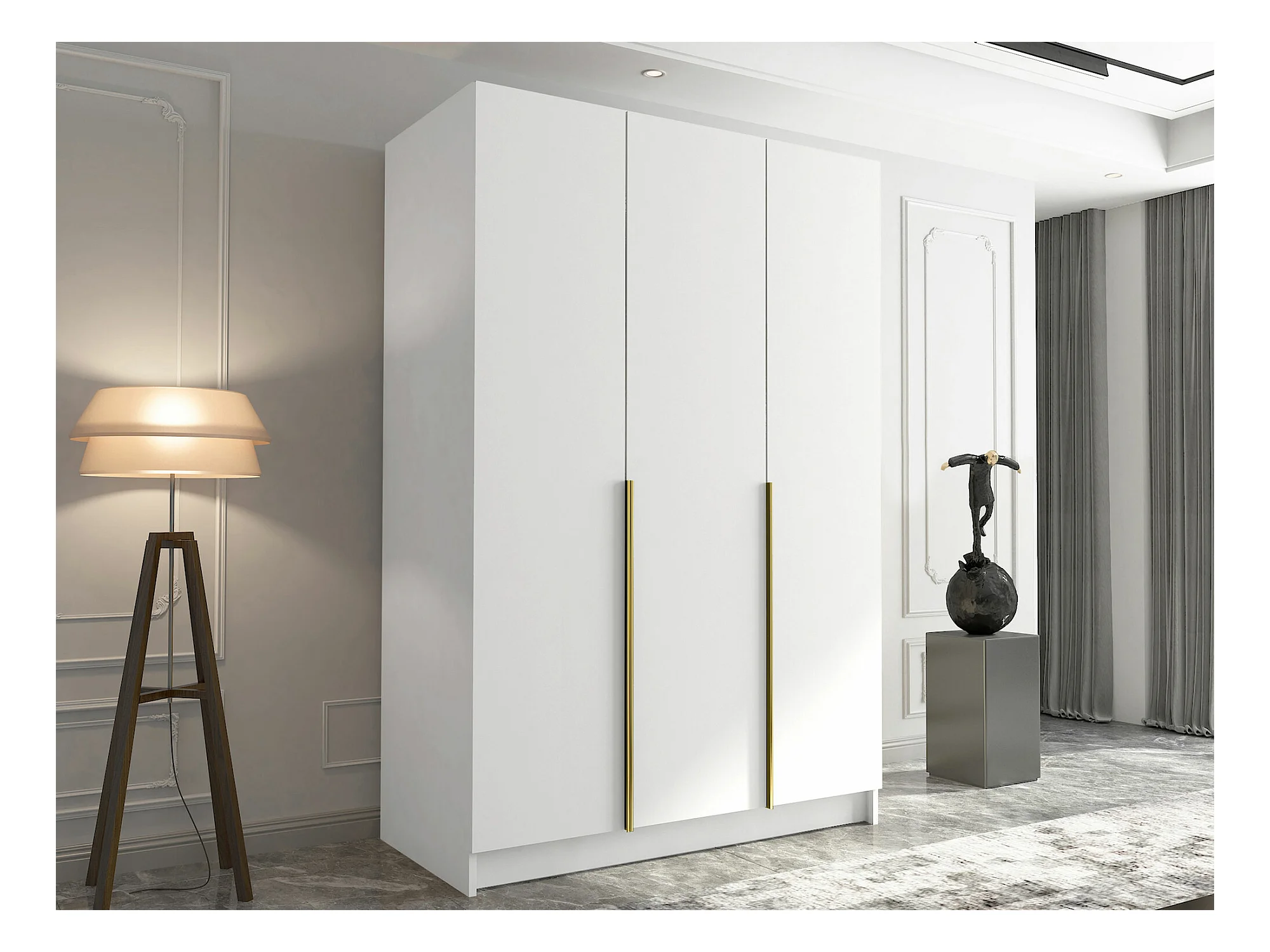 Armoire Closico 198, Blanc|Doré, 215x150x58cm, Portes d'armoire: Avec des charnières
