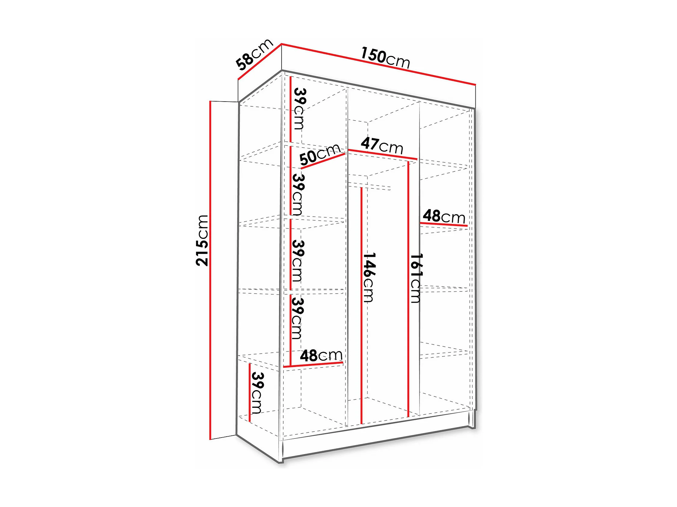 Armoire Closico 198, Noir|Doré, 215x150x58cm, Portes d'armoire: Avec des charnières