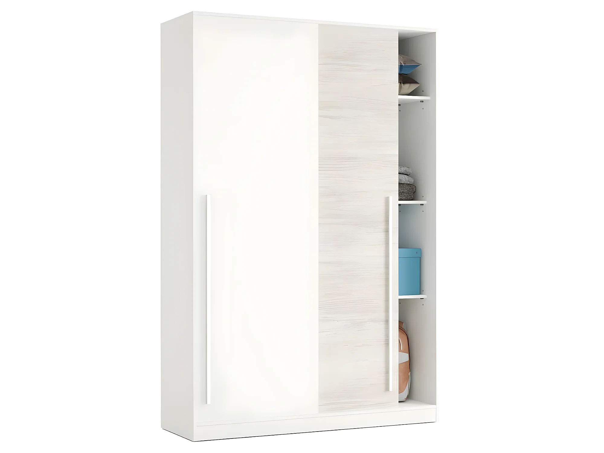Armoire avec 2 portes coulissantes coloris blanc artic / blanc poli - Hauteur 200 x Longueur 120 x Profondeur 50 cm