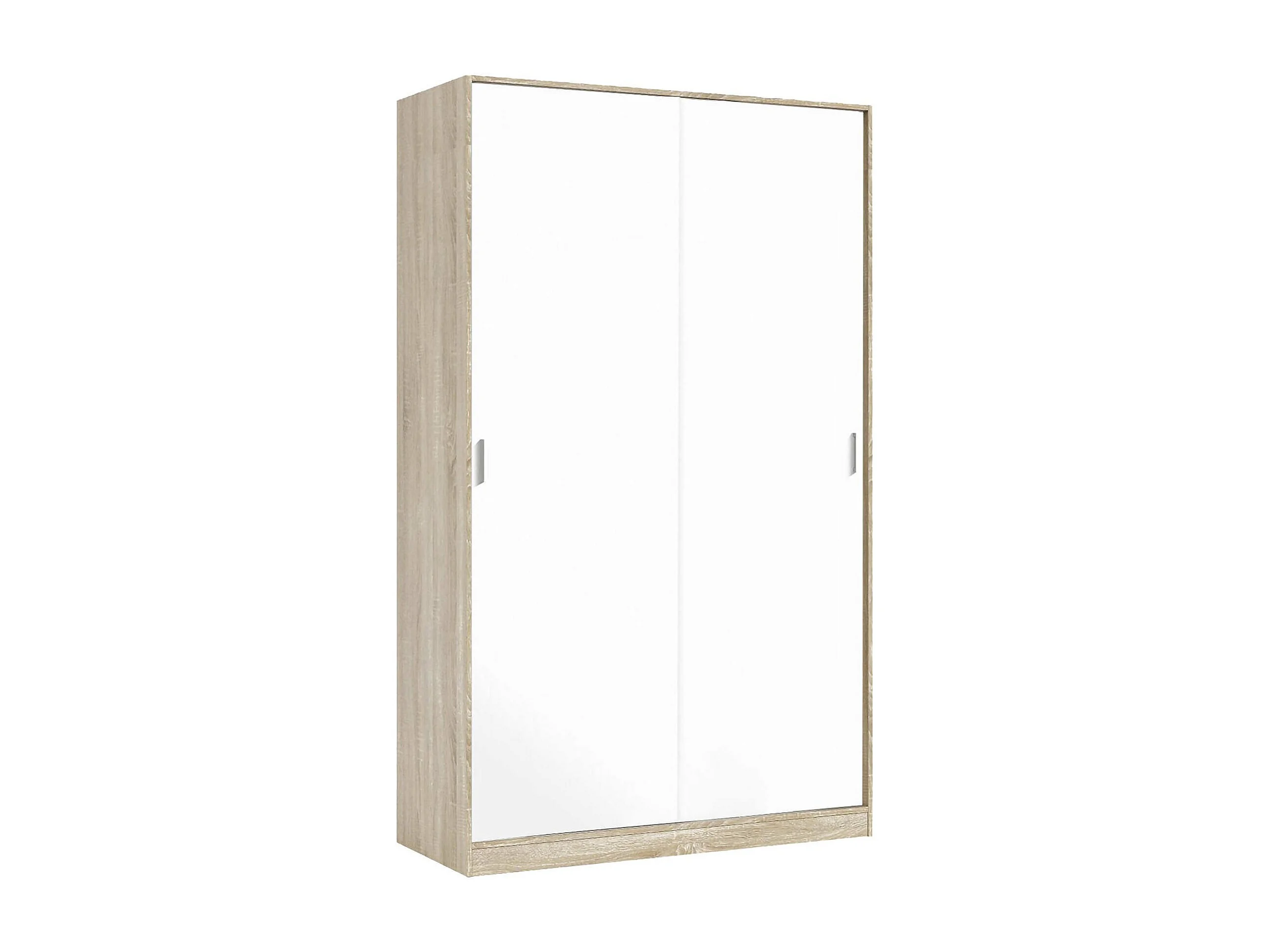 Armoire Dnoce, Armoire de chambre avec 2 portes coulissantes, Armoire avec 3 étagères et tringle à vêtements, 120x50h200 cm, Chêne et Blanc