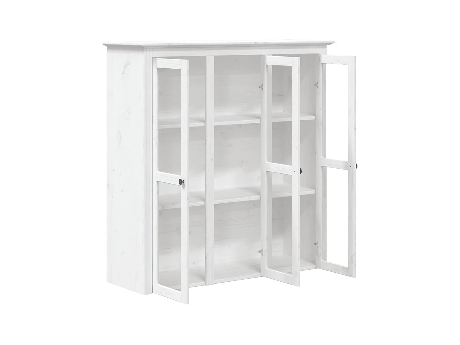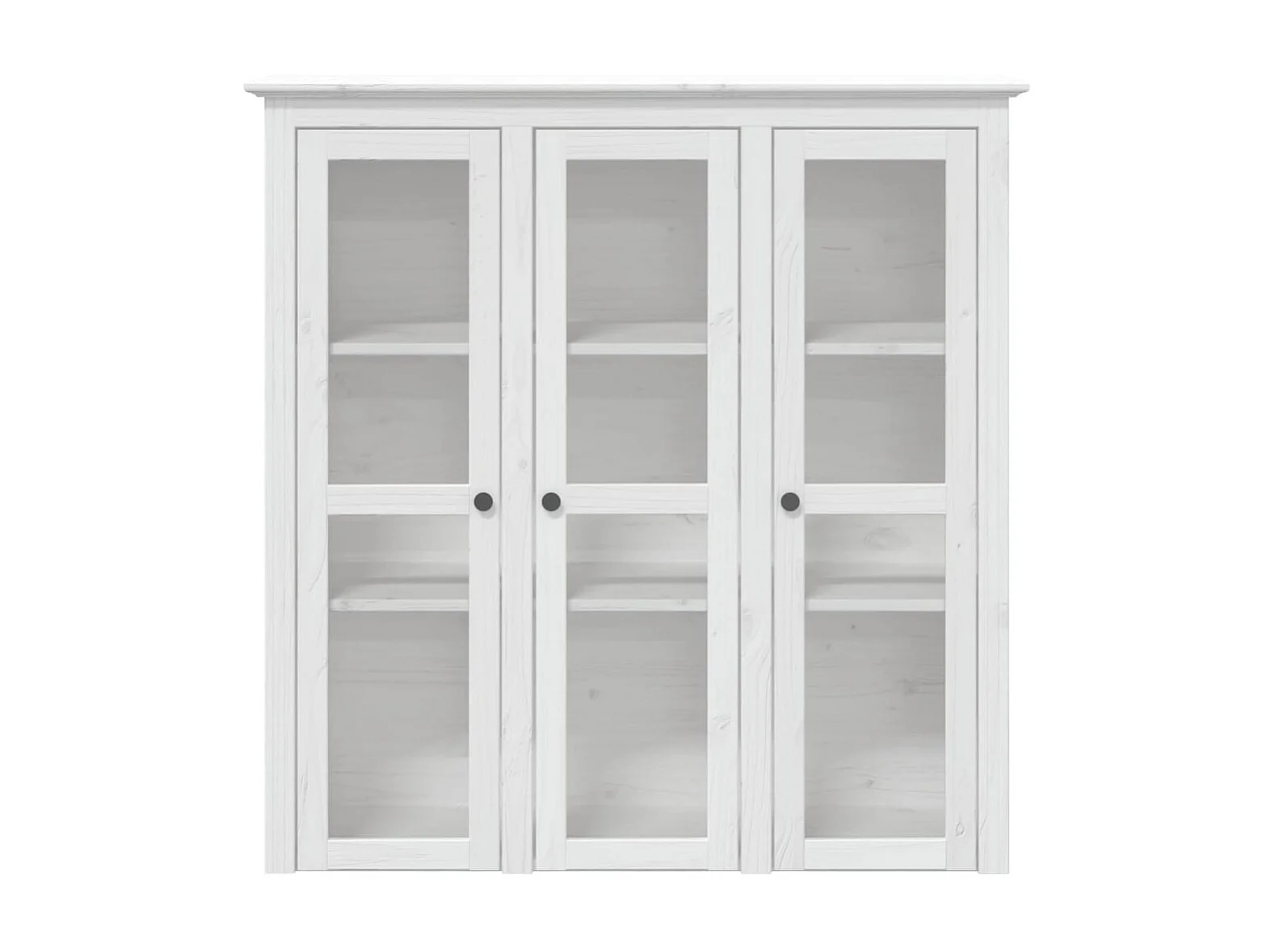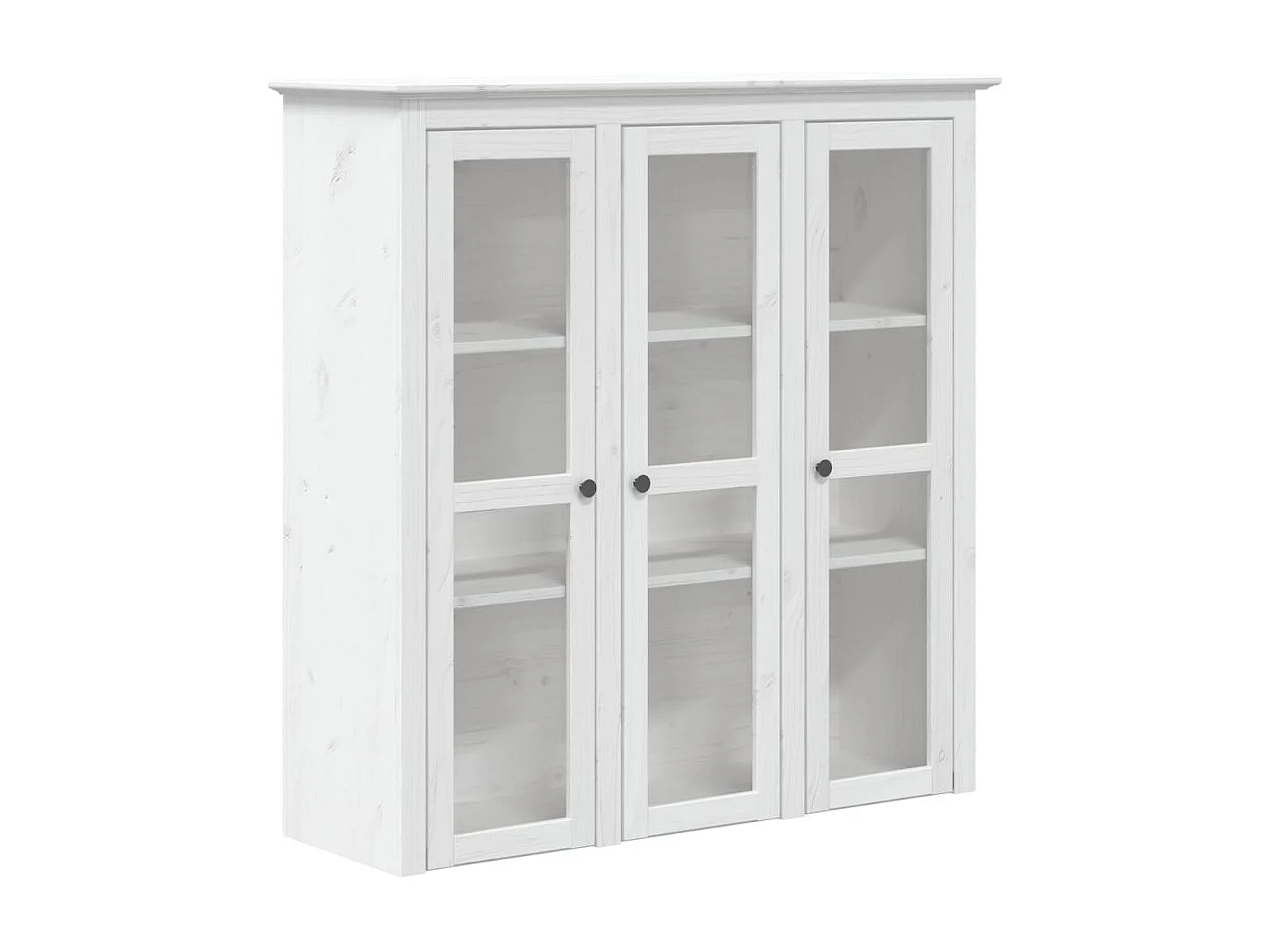 Armoire avec portes vitrées BODO blanc bois de pin massif QWE96169