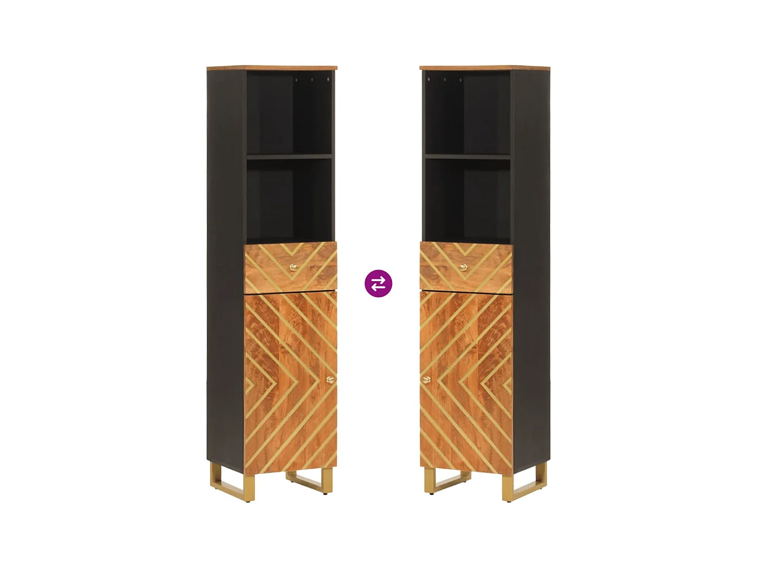 Armoire bain marron et noir 38x33,5x160 bois massif manguier