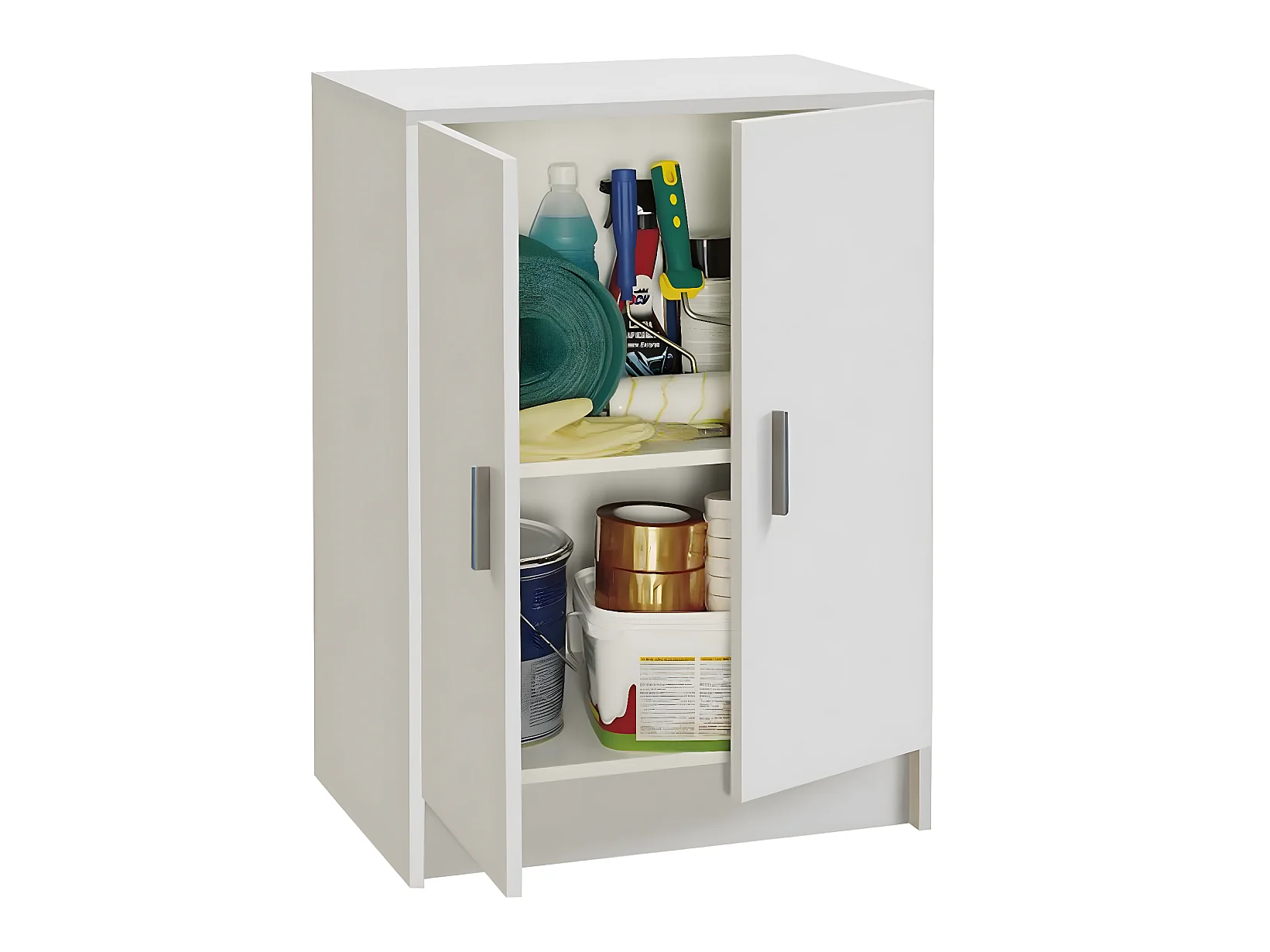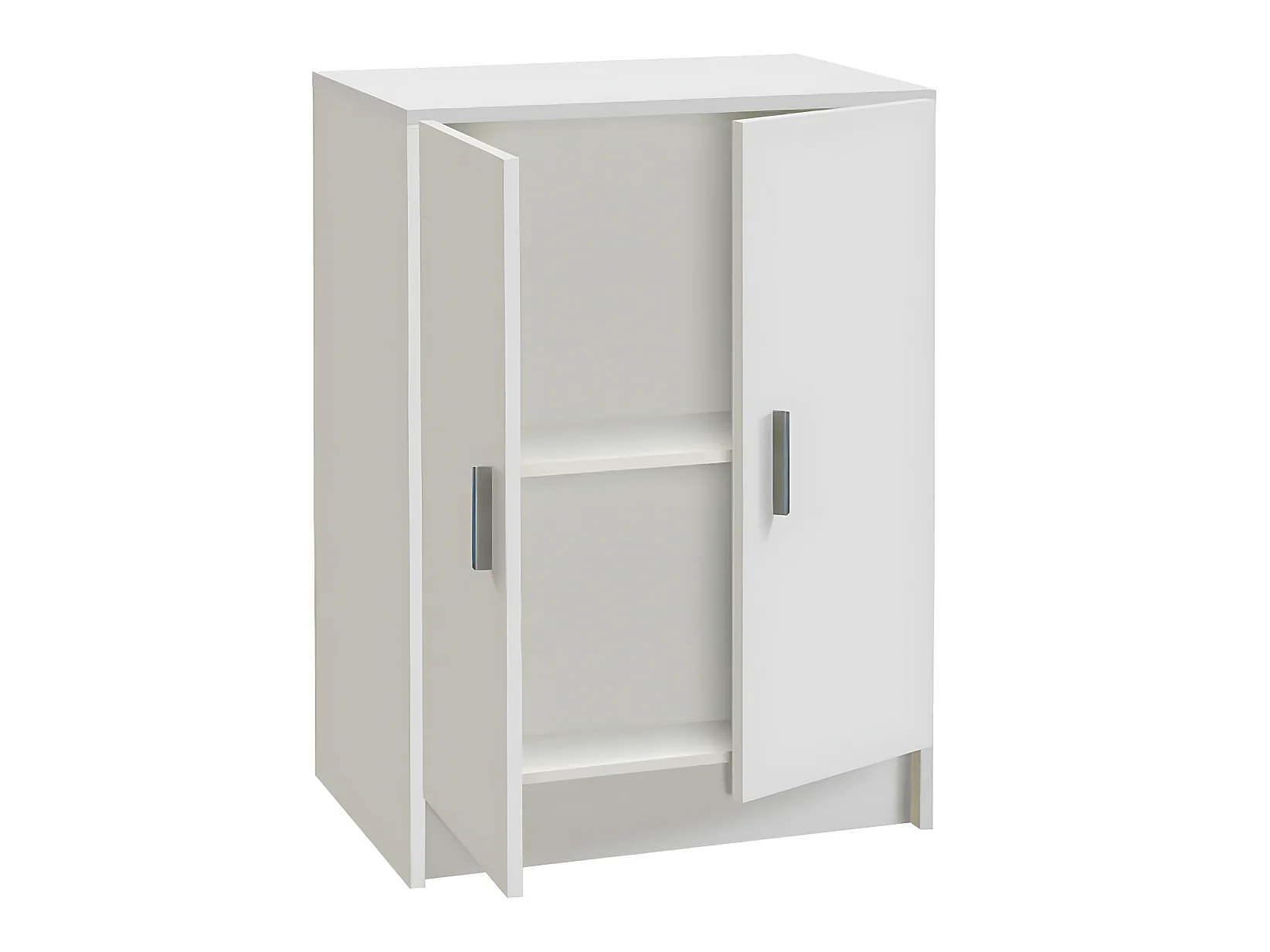 Armoire basse en bois de 2 portes, blanc - Dim : H80 x L59 x P37 cm