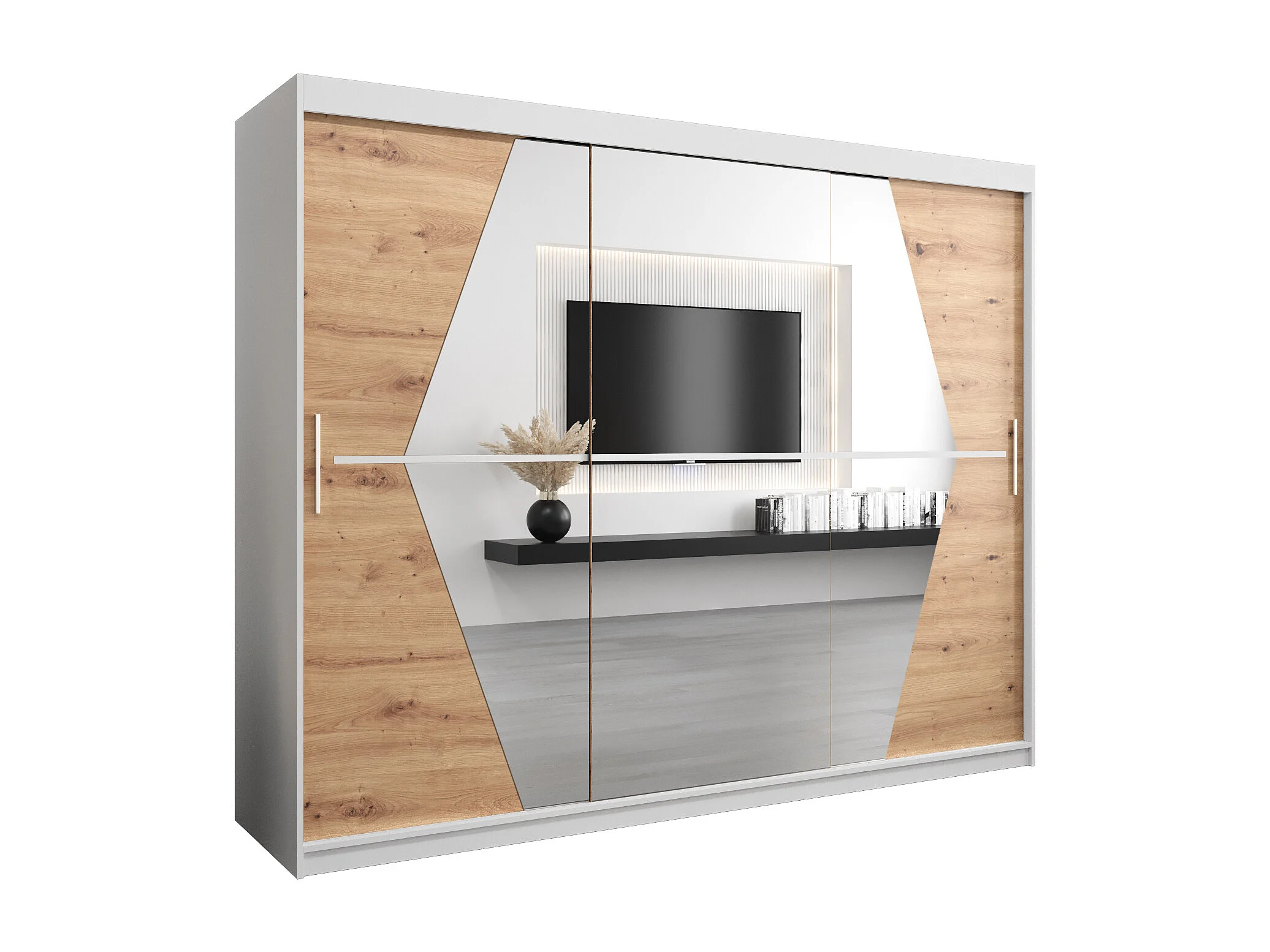 Armoire Boliwia À Portes Coulissantes 200/250/62 3 Portes (Blanc/Artisan)